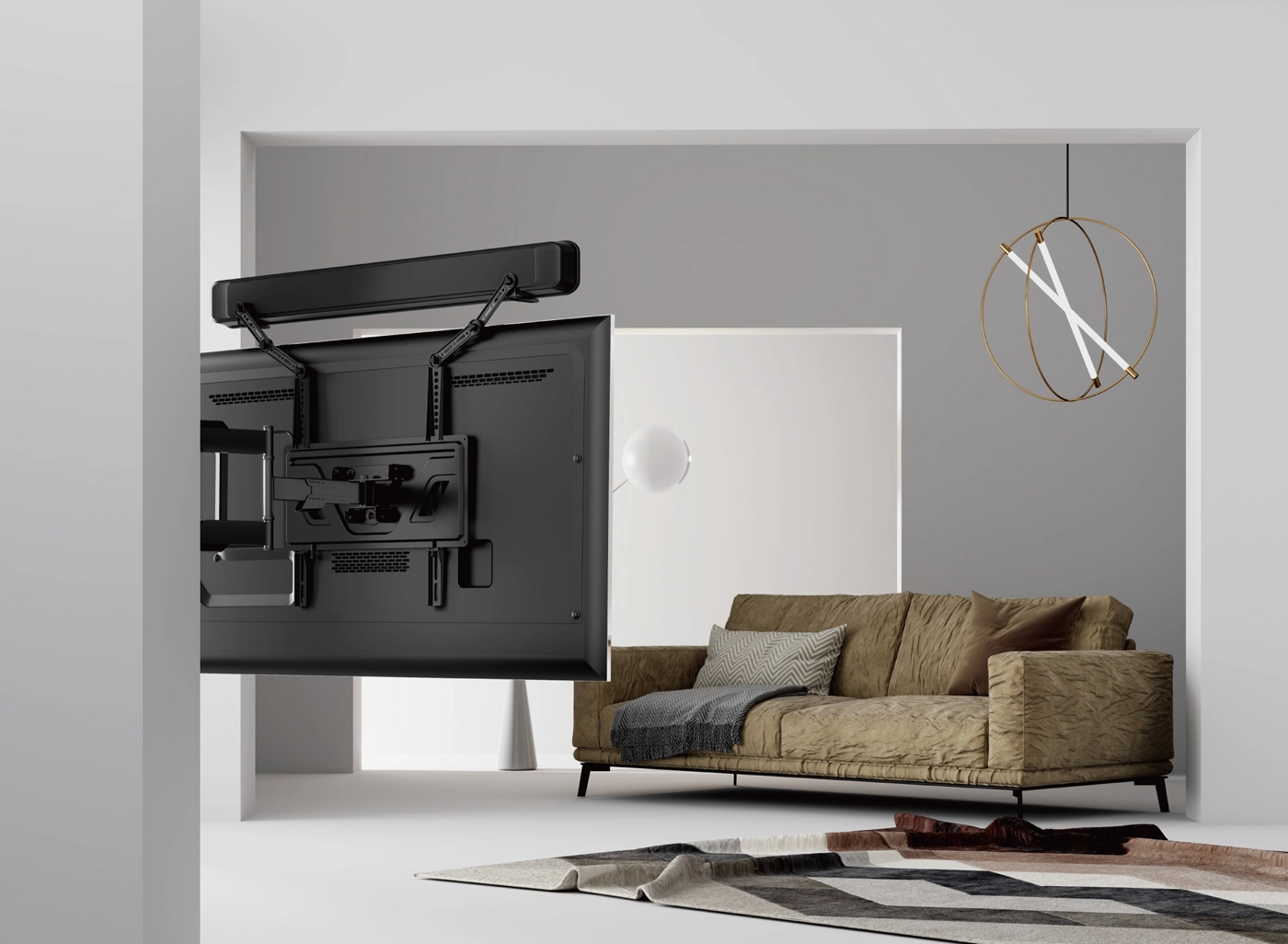 Dank der L-förmigen Halterung erhält Ihre Soundbar einen stabilen Halt, und mit der verstellbaren Halterung können Sie die Positionierung leicht anpassen, um in jedem Raum den perfekten Klang zu erzielen. Jetzt können Sie perfekten, auf Ihre Vorlieben zugeschnittenen Sound genießen.