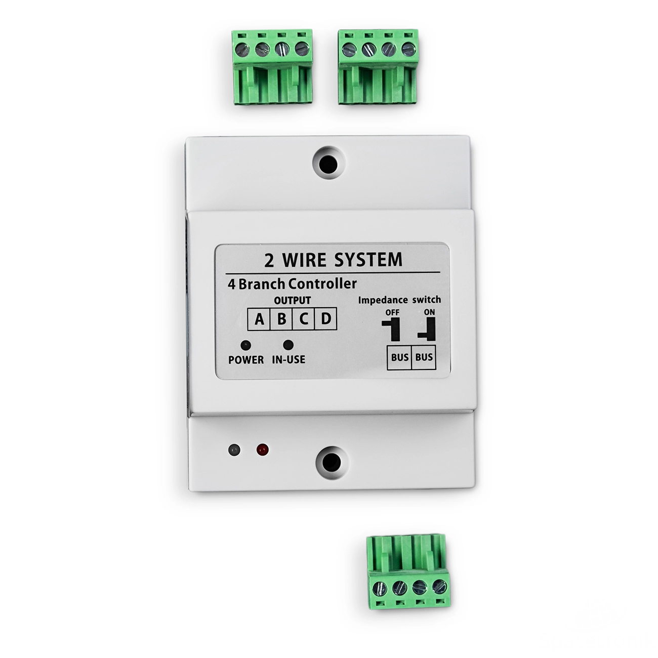 Der Videoverteiler SPD-VD04 ist eine Zusatzkomponente einer 2-Draht-Video-Türsprechanlage zum Anschluss weiterer Türstationen oder Monitore. Er ist mit 4 Ausgängen ausgestattet, an die 4 Monitore oder 4 Türstationen angeschlossen werden können. Ein Beispiel für eine Anwendung könnte ein Treppenhaus in einem Gebäude sein, in dem sich auf jeder Etage mehrere Wohnungen befinden. In einem solchen Fall werden die Monitore aus jeder Wohnung an den SPD-VD04-Verteiler angeschlossen. Die zweite Anwendung