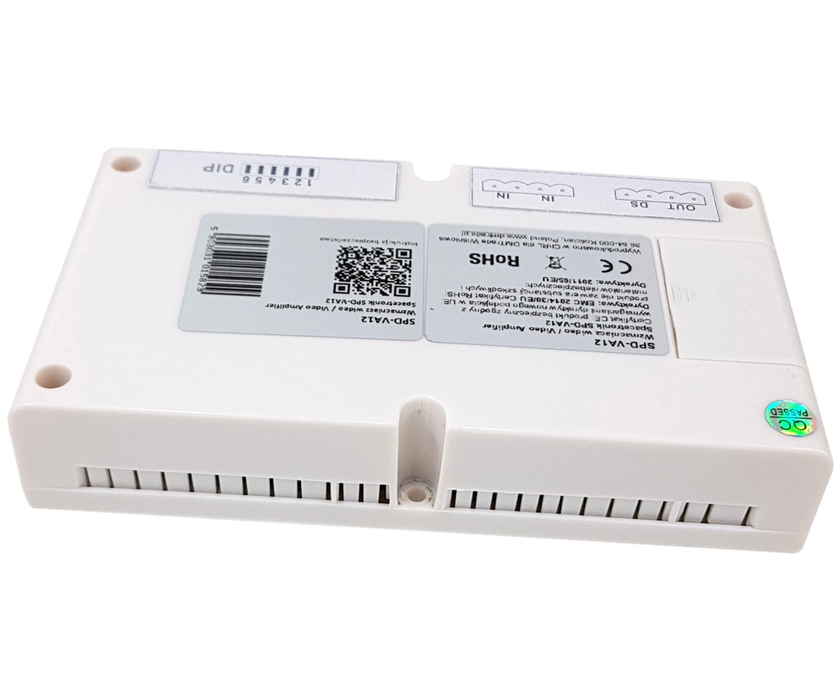 Der Video-Verstärker SPD-VA12 ist eine zusätzliche Komponente eines 2-Draht-Video-Türsprechsystems zur Signalverstärkung in großen, weitläufigen Anlagen. Einsatzbereich max. 140 m von der ersten Station zum SPD-VA12 und max. 140 m vom letzten Monitor.