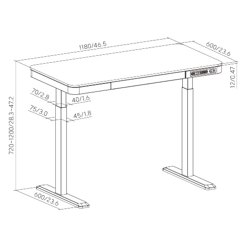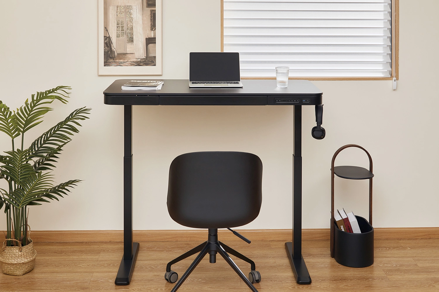 Der Schreibtisch ist mit einem fortschrittlichen Touch-Controller ausgestattet, mit dem Sie Ihre bevorzugten Höheneinstellungen speichern können. Mit nur einer Berührung kann der Tisch schnell in die zuvor gespeicherten Positionen gebracht werden, was den Komfort erhöht. Darüber hinaus verfügt der Controller über einen einzigen USB-A-Ausgang, über den Sie Ihre mobilen Geräte aufladen können, ohne zusätzliche Ladegeräte zu benötigen. Diese Lösung sorgt für eine aufgeräumte Tischplatte und bietet einfachen Zugang zu einer Stromquelle für alle Geräte, die Sie benötigen.