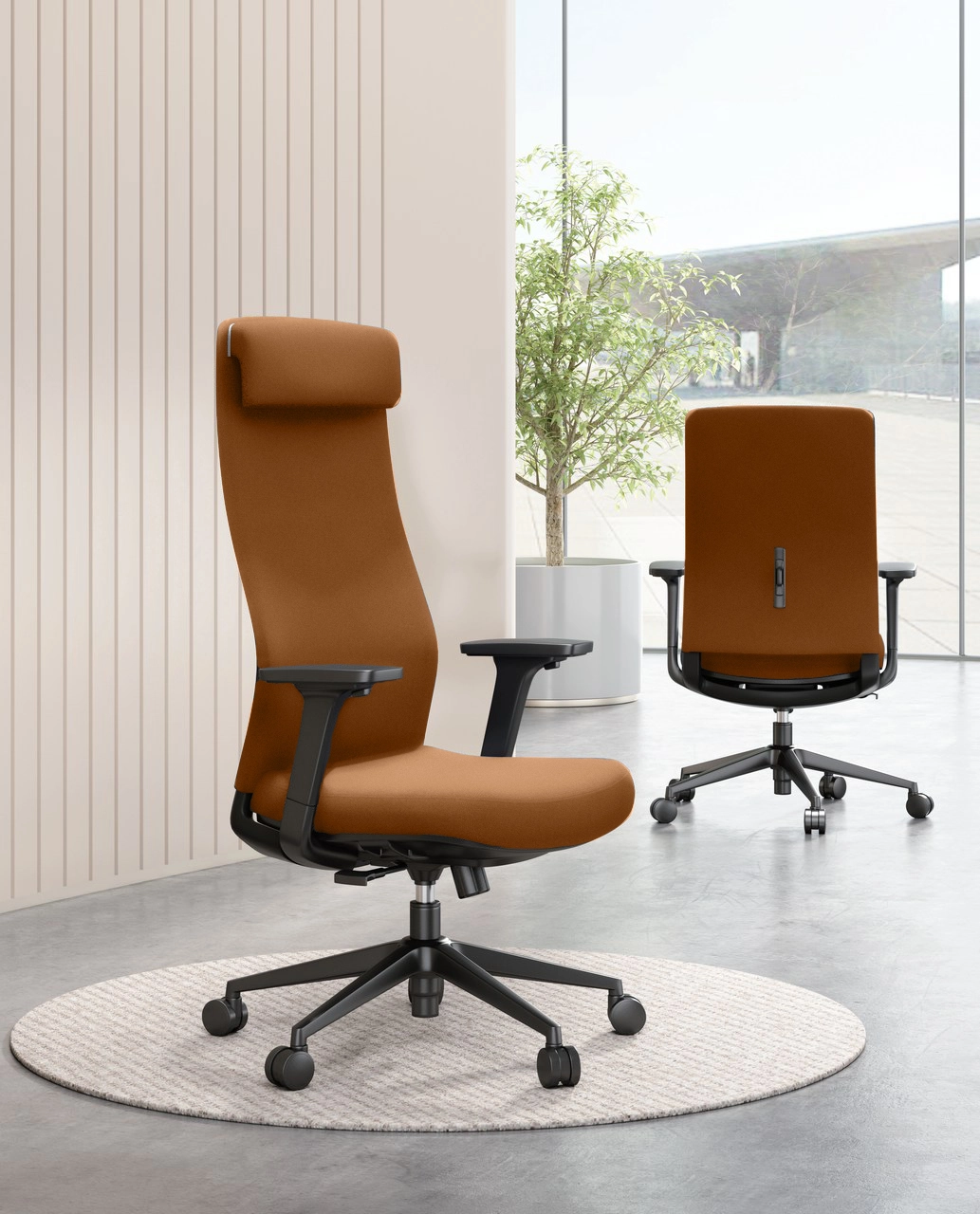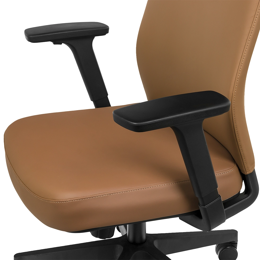 Die hohe Qualität der für die Herstellung des Schreibtischstuhls verwendeten Komponenten führt zu einer repräsentativen Optik. Die Sitzfläche ist mit einem angenehmen Stoff gepolstert und mit einem hochdichten Schaumstoff unterlegt. Die Ellbogen ruhen auf ergonomischen Armlehnen. Mit seinem eleganten braunen PU-Leder passt dieser hochwertige Stuhl perfekt zu Ihrem Business-Stil. Die modische und ergonomische Form des Bürostuhls sorgt dafür, dass Sie auch über viele Stunden hinweg bequem sitzen können.