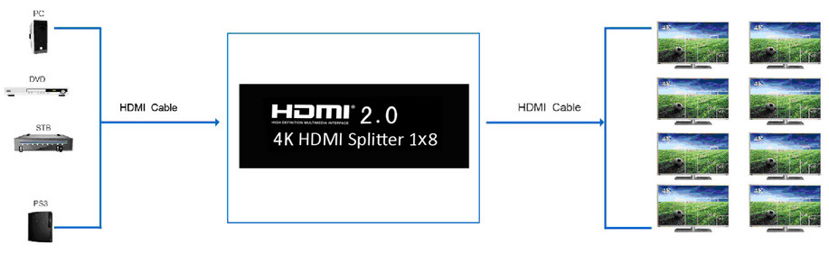 Eigenschaften:- Ein HDMI-Eingangssignal wird auf 8 HDMI-Geräte aufgeteilt