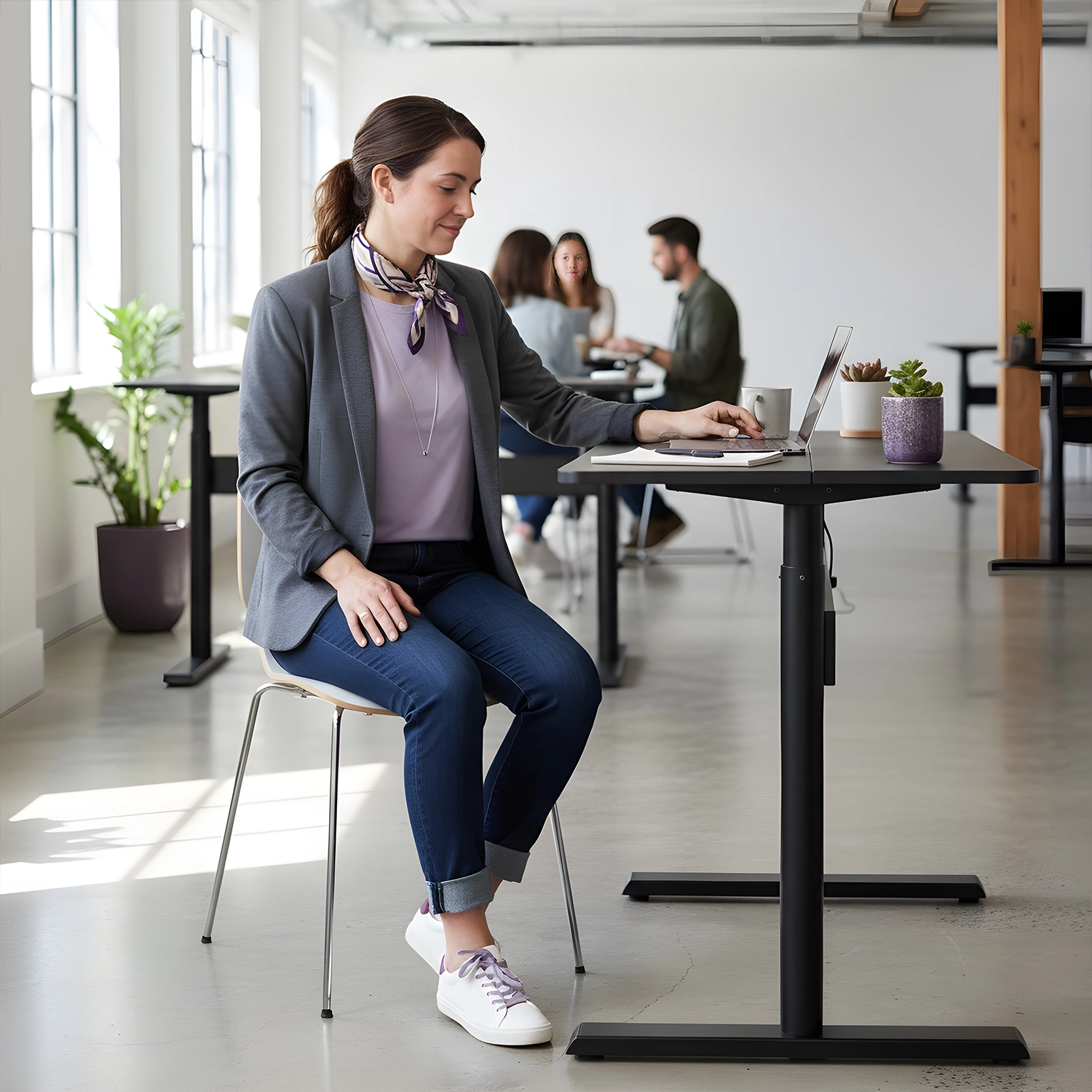 Ein höhenverstellbarer Schreibtisch, der Ihnen viel Bewegungsfreiheit bietet