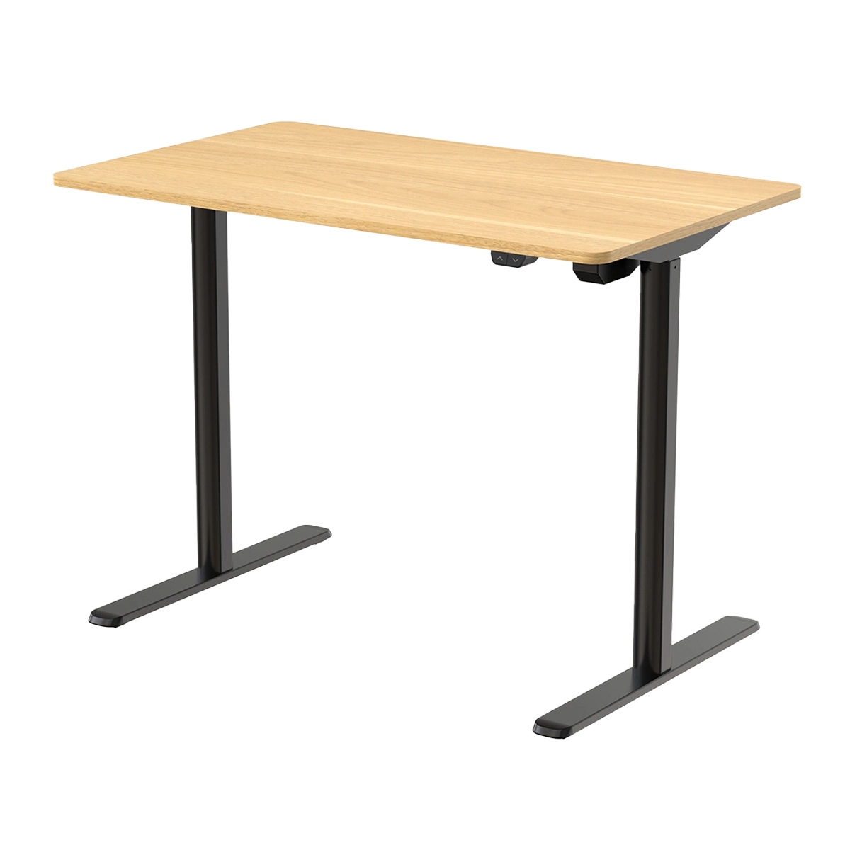Eleganter Spacetronik Moris SPE-O121 100x60 elektrisch verstellbarer Schreibtisch, helle Holzplatte und schwarzes Gestell