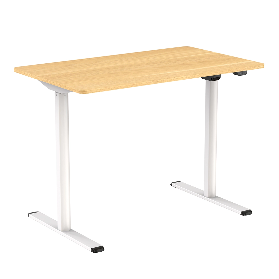 Eleganter Spacetronik Moris SPE-O121 100x60 elektrisch verstellbarer Schreibtisch, helle Holzplatte und weißes Gestell