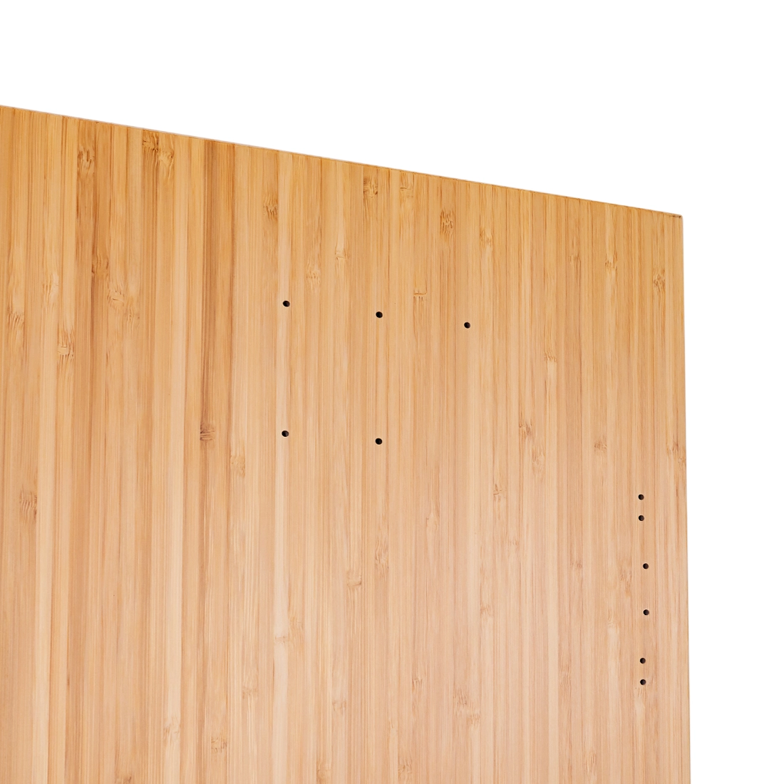 Stabile 1400x700 mm große Tischplatte aus Bambusholz mit einer Stärke von 19 mm für einen Schreibtisch oder Tisch. Sie hat gerade Ecken und ist mit einer Schutzschicht aus haltbarem UV-gehärtetem Polyurethan auf Wasserbasis geschützt. In Kombination mit einem elektrischen Tischgestell ist sie ein ergonomisches und modernes Accessoire für den Arbeitsplatz zu Hause und im Büro.
