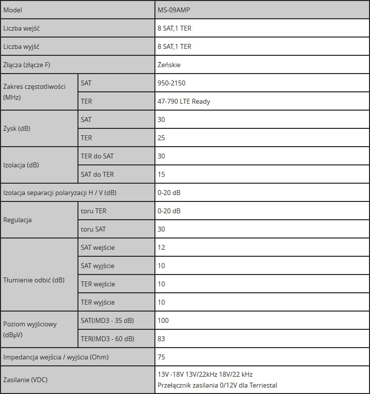 Bei der Herstellung von Spacetronik-Multischaltern haben wir nicht an ein paar Euro gespart. Deshalb haben wir ein stabiles Netzteil für einen dauerhaften Betrieb und einen zusätzlichen 0/12V-Schalter für die Stromversorgung des DVB-T/T2/FM/R-Pfades (Terminal-Multischalter) verwendet. Wir haben die hochwertigsten Potentiometer verwendet, die den Multischaltern sehr gute Arbeitsparameter verleihen, die für einen stabilen und dauerhaften Betrieb nützlich sind, und auch ein stabiles Signal und eine schnelle Umschaltung der Kanäle in weniger gut gemachten Installationen gewährleisten, z.B. bei schlechter Verkabelung, zu kleiner SAT-Antenne, schlecht gemachter terrestrischer Antennenanlage.