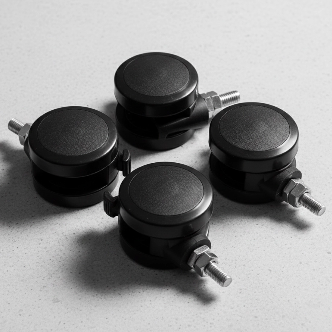 Mit den Spacetronik Büro-Rollen wird Ihr vorhandener elektrischer Schreibtisch mobil. Wenn Sie häufig den Raum wechseln oder viel unterwegs sind, helfen Ihnen die Rollen, Ihren Schreibtisch mühelos zu bewegen. Zwei der vier Rollen sind mit Bremsen ausgestattet, die Ihren Schreibtisch vor ungewollten Bewegungen schützen und ihn an einem Ort halten.