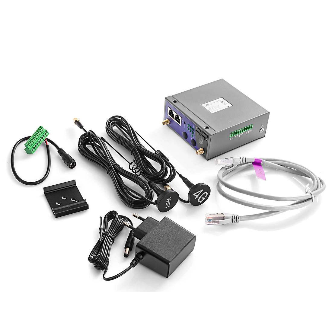 Der Industrierouter ist mit externen 4G LTE- und Wi-Fi-Antennen ausgestattet. Diese lassen sich leicht an jeder Metalloberfläche befestigen. Über RP-SMA-Anschlüsse können bei Bedarf weitere Antennen angeschlossen werden. Der Router verfügt außerdem über zwei SIM-Steckplätze, so dass das Gerät automatisch umschalten kann, wenn zum Beispiel eines der Netze nicht verfügbar ist.