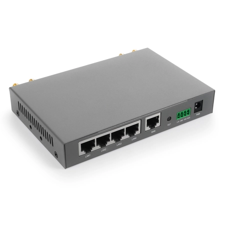 Kontrollleuchten: Mit "PWR", "Wifi", "WAN", 4x "LAN", "SIM" Kontrollleuchten