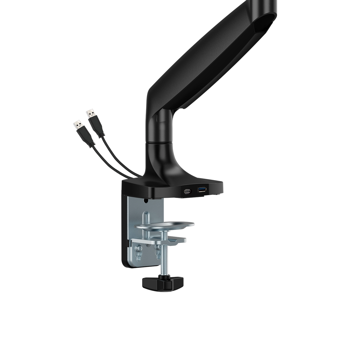 Der Sockel der Spacetronik SPA-S110B Monitorhalterung ist mit zwei USB-Eingängen (USB-A, USB-C) ausgestattet. Das bedeutet, dass Sie zum Beispiel Ihr Telefon problemlos daran anschließen können. So können Sie z.B. Ihr Smartphone aufladen, ohne vom Computer aufstehen zu müssen. Mit dem SPA-S110B haben Sie alles, was Sie für Ihre Arbeit brauchen, immer griffbereit.