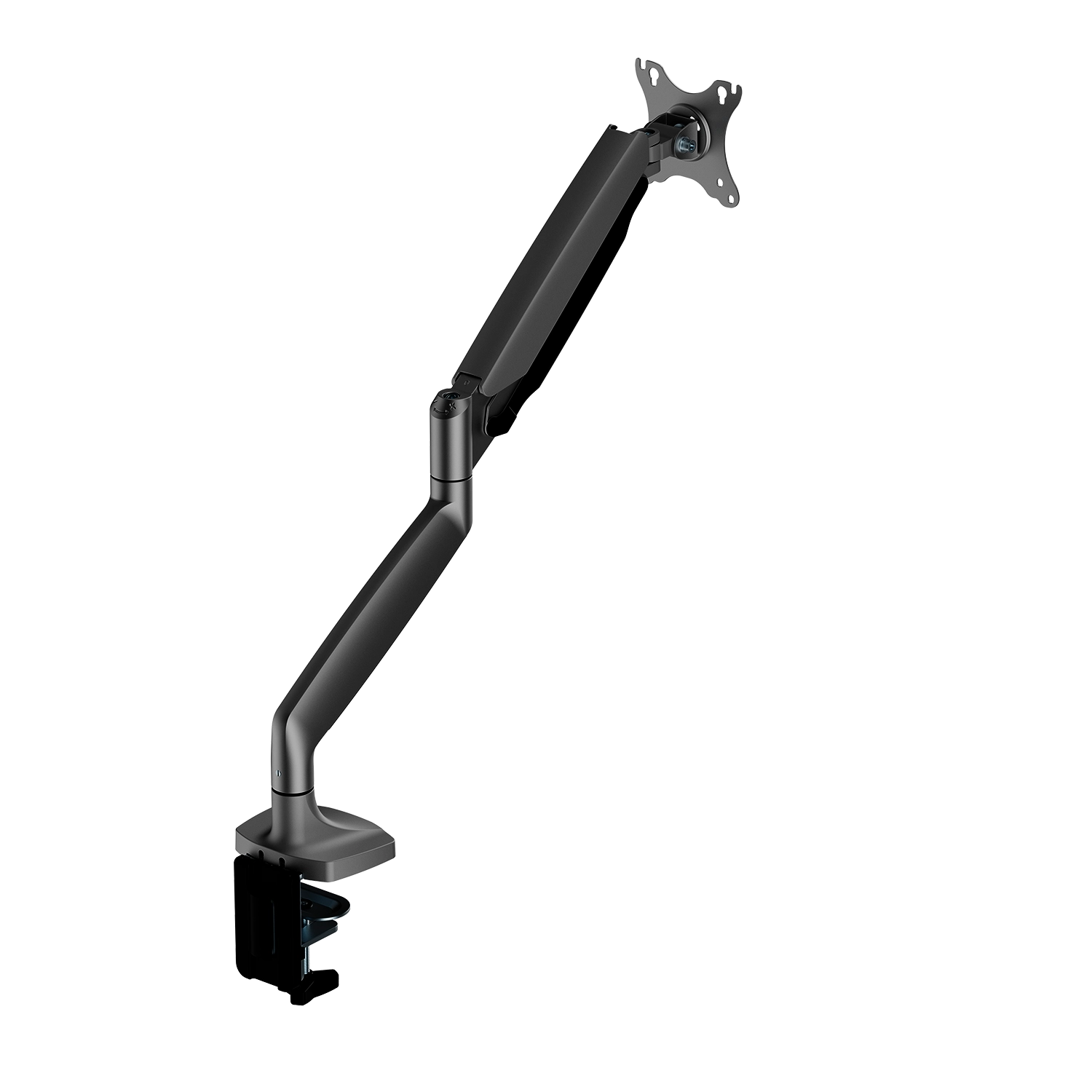 • Spacetronik SPA-S110B Monitorhalterung. Ermöglicht erweiterte Positionseinstellungen. Einfach zu montieren mit einer Tülle oder Klemme. Konzipiert für Bildschirme mit einem Durchmesser von 17"-45" und einem maximalen Gewicht von bis zu 16 Kilogramm.