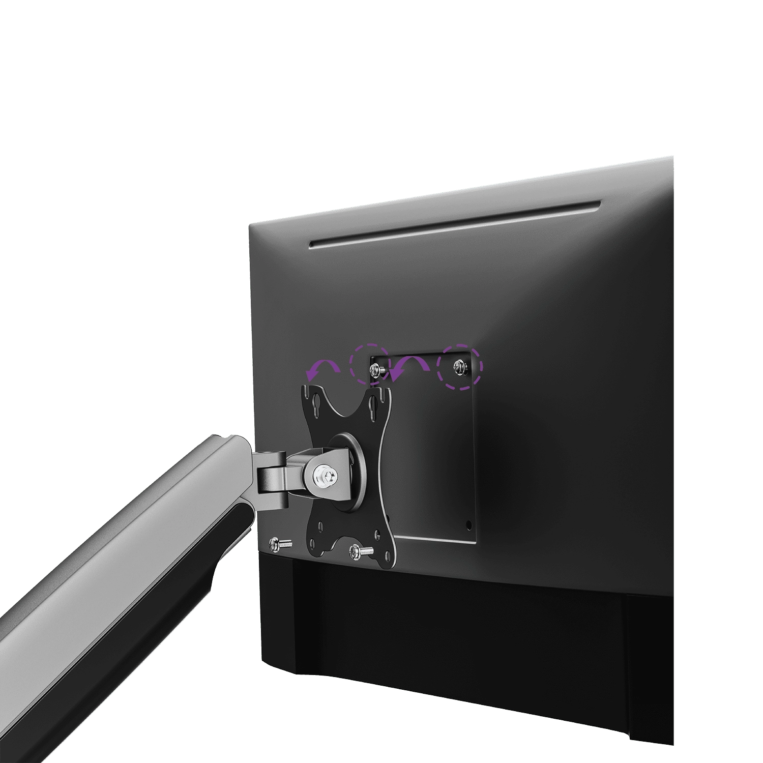 Der Spacetronik SPA-S110B Monitorarm ist aus einer Kombination aus Stahl, Aluminium und Kunststoff gefertigt. Dadurch bietet er Ihnen eine maximale Belastbarkeit von bis zu 16 Kilogramm. Darüber hinaus können Sie auch einen gebogenen Monitor daran aufhängen (bis zu 13 Kilogramm). Sie müssen sich also nicht einschränken! Sie können die meisten Monitore mit einer Diagonale von 17"-45" montieren. Die Halterung ist kompatibel mit dem VESA-Standard (75×75, 100×100). Die Spacetronik SPA-S110B Monitorhalterung wurde mit einer Pulverbeschichtung versehen. Dies erhöht ihre Korrosionsbeständigkeit. Und dank des Gasfedermechanismus können Sie die Halterung leicht auf das richtige Gewicht des Bildschirms einstellen.