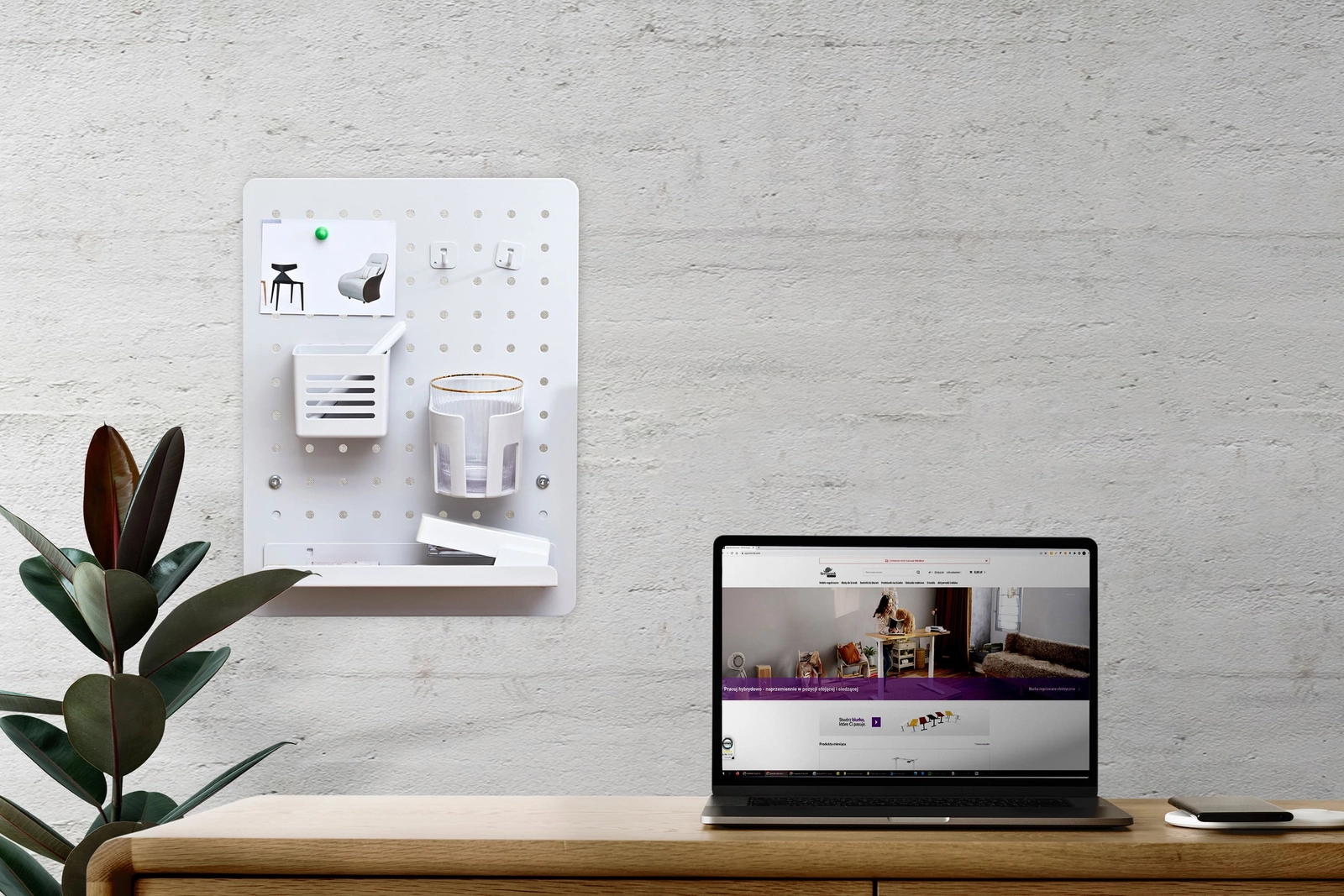 Die LochwandSPB-151W kann sowohl horizontal als auch vertikal mit anderen Elementen kombiniert werden. So können Sie es an verschiedene Räume anpassen. Außerdem können die mitgelieferten Komponenten auf verschiedene Weise verwendet werden. So können die Haken zum Beispiel als Telefonhalter oder für Kopfhörer verwendet werden. Dank der Löcher im Brett können Sie selbst entscheiden, wo Sie bestimmte Elemente des Kits anbringen möchten. Dadurch ist die Wand vollständig anpassbar und kann Ihren Anforderungen gerecht werden. Darüber hinaus ist die Tafel magnetisch. Sie können also auch problemlos verschiedene Gegenstände mit Stiftmagneten an ihr befestigen. Die Lochtafel SPB-151W gehört also zum Genre der DIY-Objekte (Do It Yourself?). Sie ermöglicht es Ihnen, Ihre unterschiedlichsten Ideen zu verwirklichen.