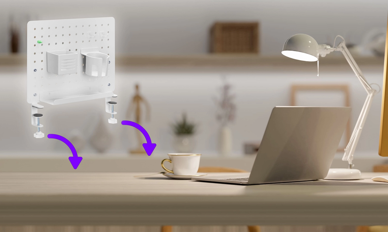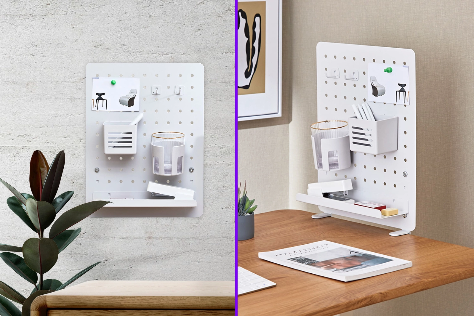 Sie können Ihre Lochwand ganz einfach mit Klammern an Ihrem Schreibtisch oder an der Wand befestigen. Auf diese Weise können Sie alle Utensilien, die sonst chaotisch auf dem Schreibtisch liegen, in den entsprechenden Behältern oder an der nächsten Wand aufbewahren. So genießen Sie einen freien und geordneten Raum und haben trotzdem alle wichtigen Büromaterialien griffbereit.