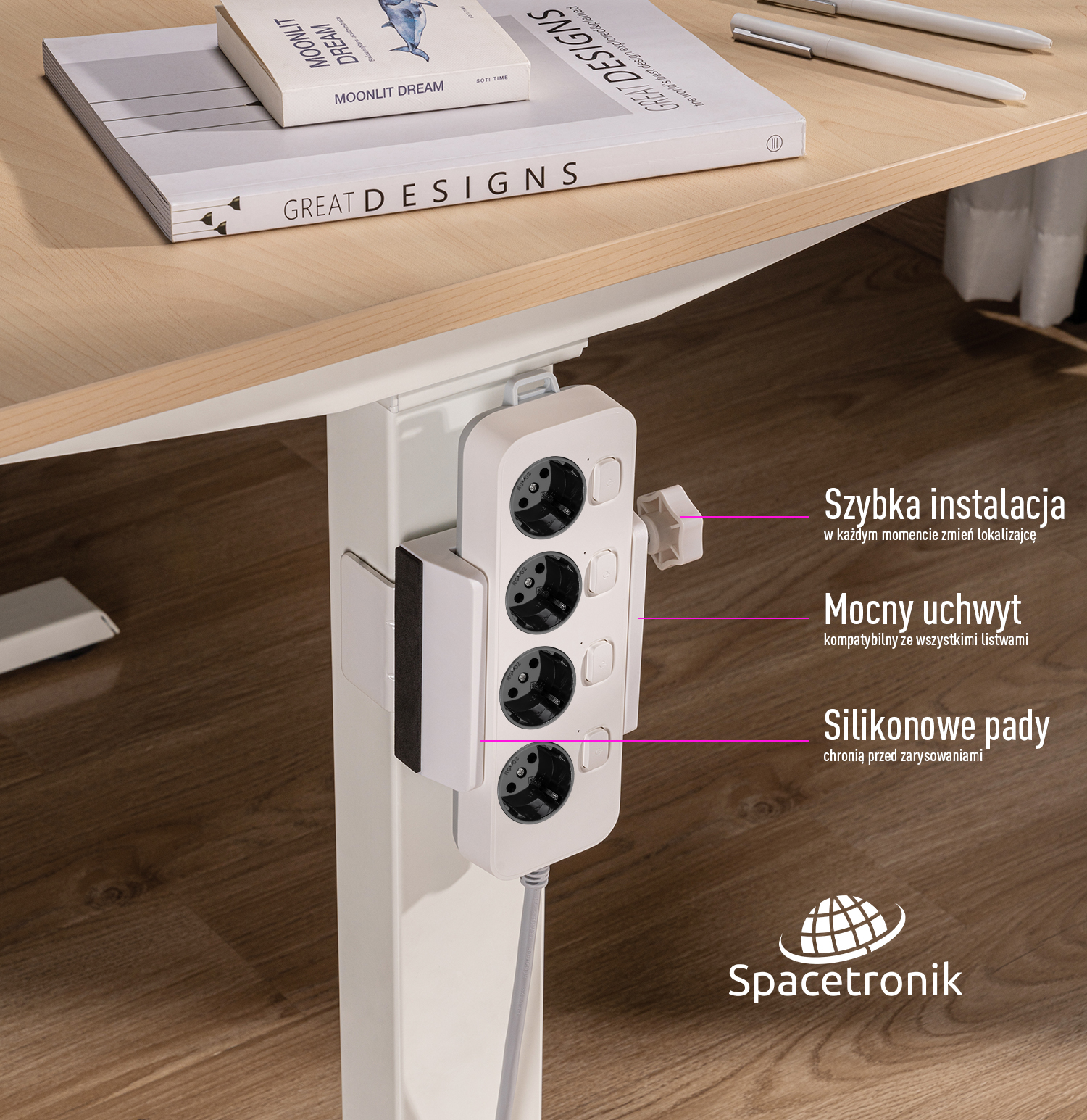 STECKDOSENLEISTENHALTER FÜR TISCHBEIN SPACETRONIK