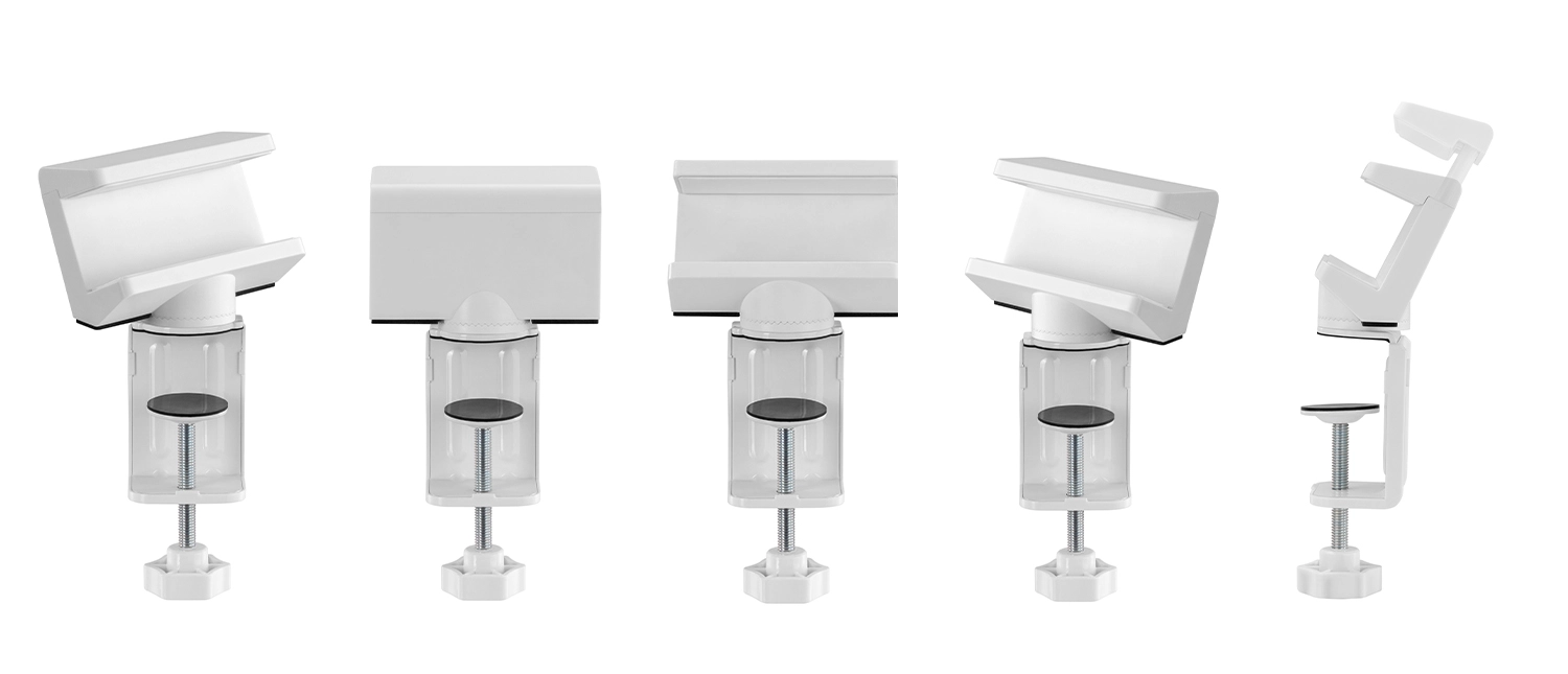 Positionierung der Leiste zu unterstützen. 2Arten von Halterungen Können an den meisten Schreibtischen fest angebracht werden.
