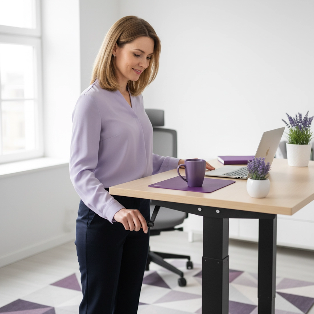 Arbeiten Sie im Stehen oder Sitzen dank der Höhenverstellung