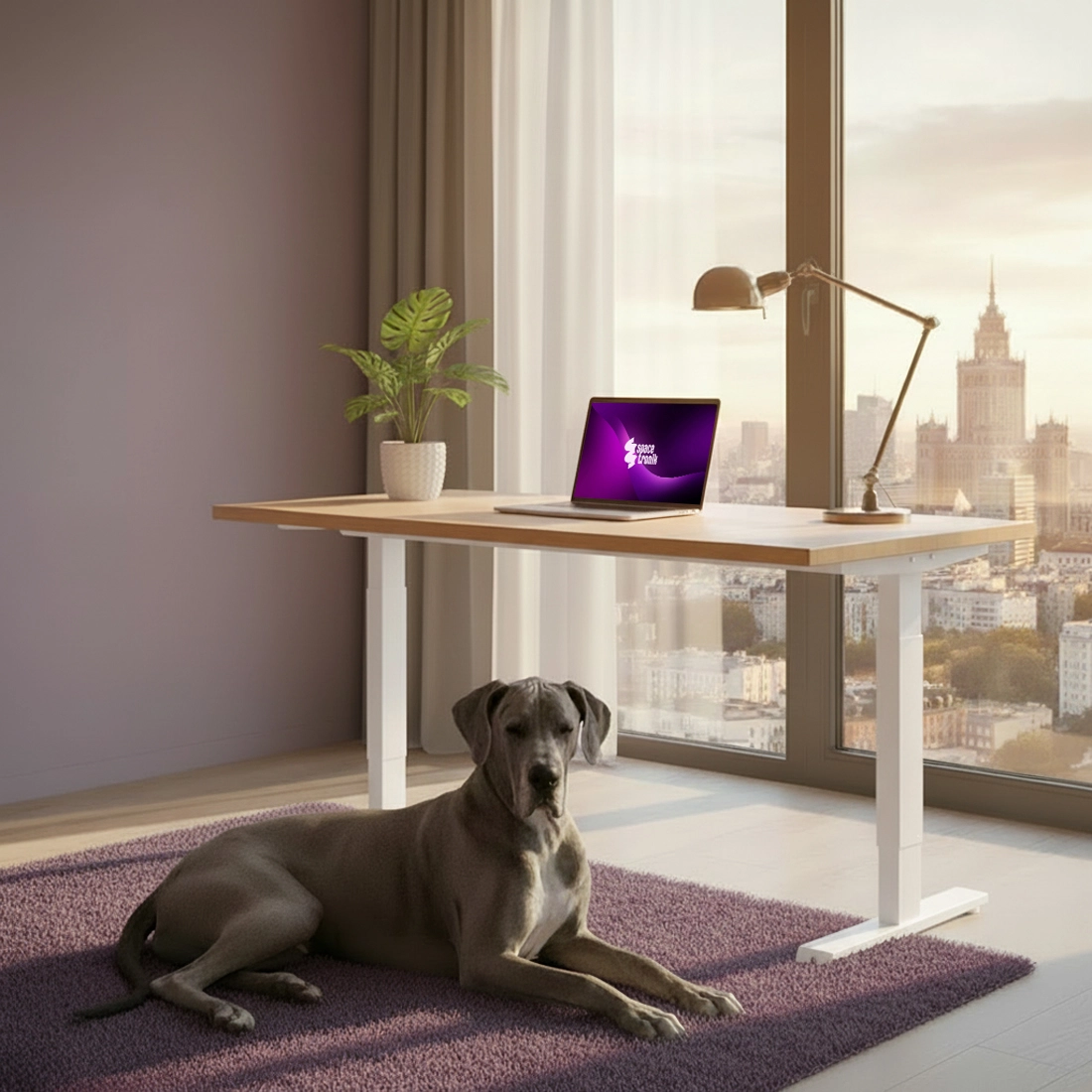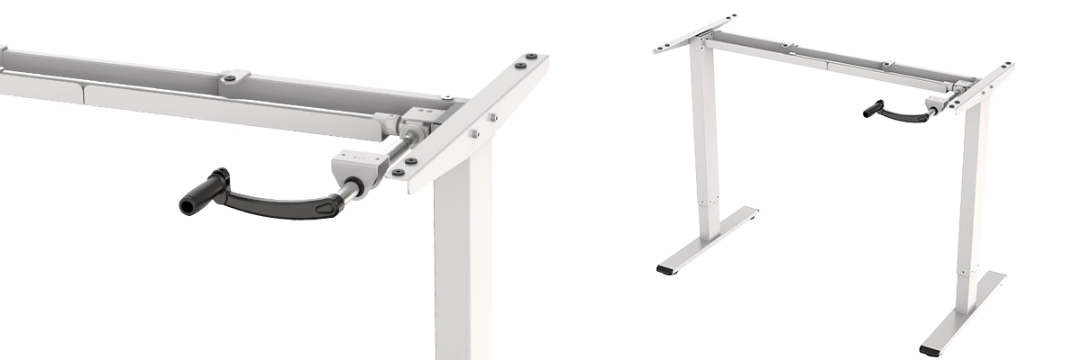 Schaffen Sie einen ergonomischen und modernen Arbeitsplatz mit dem Spacetronik SPE-114MW Kurbel-Tischgestell (weiß)