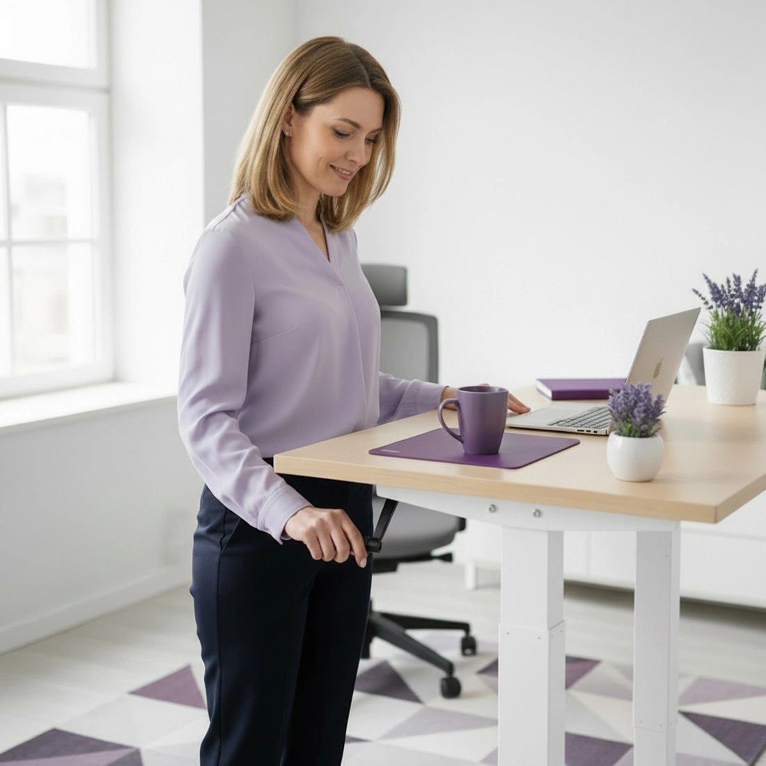 Arbeiten Sie im Stehen oder Sitzen dank der Höhenverstellung