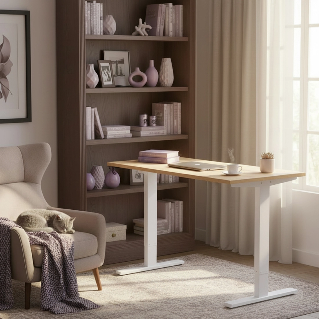 Das vielseitige Gestell des elektrischen Gestells ermöglicht nicht nur die Verstellung nach oben und unten, sondern auch die manuelle horizontale Verstellung (von Seite zu Seite). Sie können die Struktur ganz einfach erweitern, um sie an die Größe Ihrer Tischplatte anzupassen. Empfohlene Abmessungen der Tischplatte: 1000-1600 mm (Breite), 600-800 mm (Tiefe).