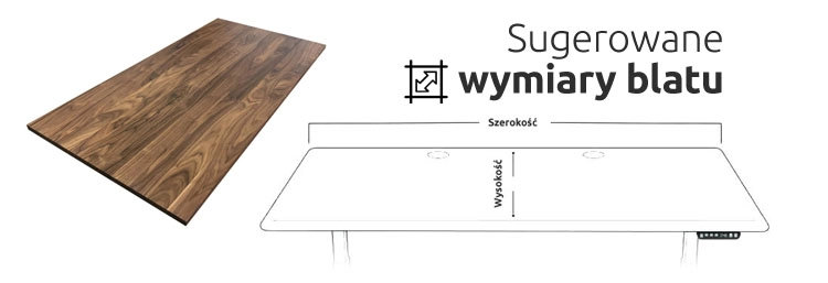 Sugerowany wymiary blatu biurka elektrycznego