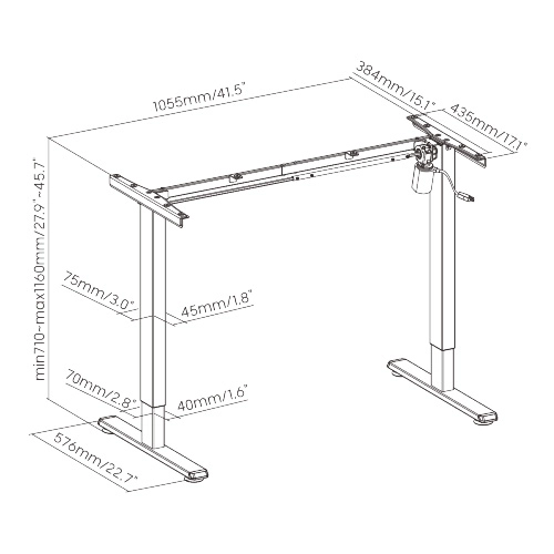 Die Höhenverstellung ermöglicht es Ihnen, die richtige Höhe des Tisches an Ihre Körpergröße anzupassen. Sie müssen sich nicht an den Schreibtisch anpassen - er ist ein Möbelstück, das sich Ihnen anpasst!