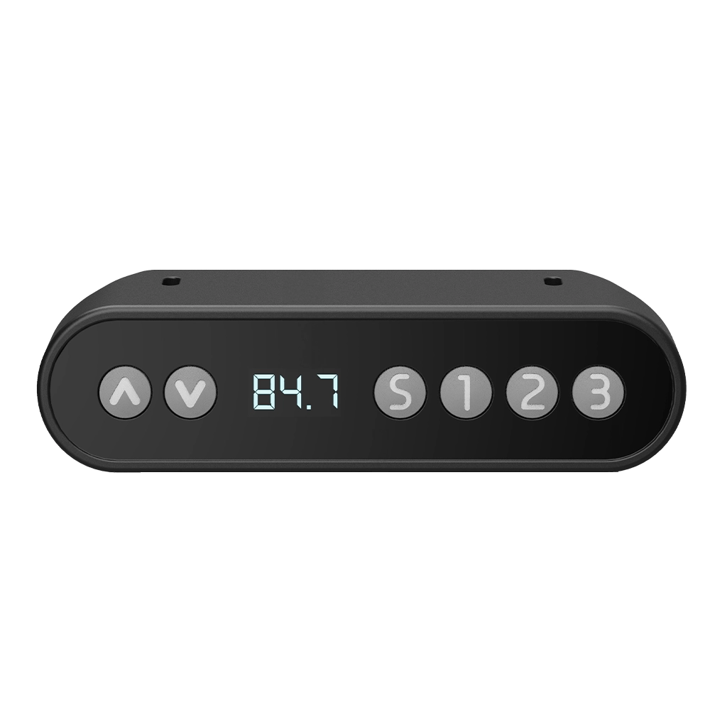 Mit den Auf- und Ab-Tasten können Sie ganz einfach die ideale Höhe einstellen. Dank der drei programmierbaren Tasten können Sie Ihre Lieblingspositionen speichern und mit einem einzigen Klick zu jeder dieser Positionen zurückkehren, zum Beispiel wenn Sie im Stehen arbeiten möchten. Die aktuelle Höhe des ergonomischen Tisches wird auf dem Display angezeigt.