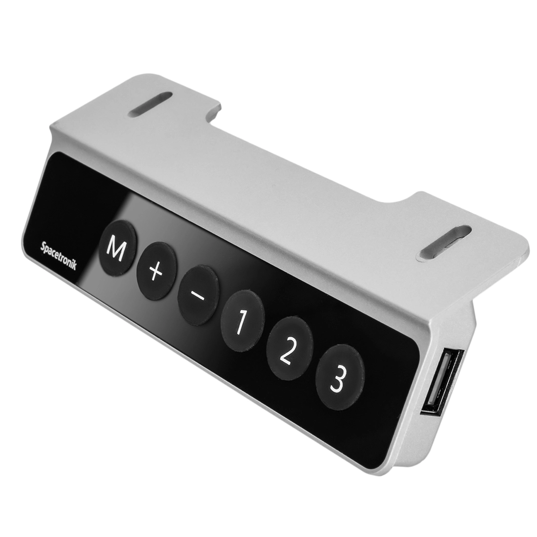 Das elektrisch verstellbare Gestell SPE-142 von Spacetronik ist mit einem Komfortregler ausgestattet. Verstellen Sie die Höhe mit den Tasten "up" und "down" und beobachten Sie die aktuelle Position auf der LED-Anzeige. Speichern Sie bis zu drei gewählte Höheneinstellungen und kehren Sie in Zukunft zu ihnen zurück.