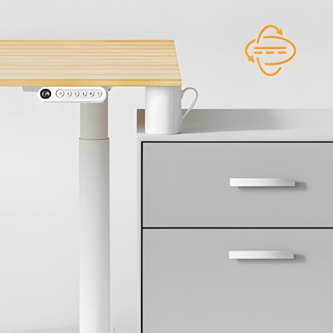 Das elektrische Tischgestell ist mit einem Kollisionsvermeidungssystem ausgestattet, das die Sicherheit am Arbeitsplatz deutlich erhöht. Die innovative Antikollisionstechnik sorgt dafür, dass der Tisch bei Höhenveränderungen automatisch zurückfährt, wenn er auf ein Hindernis stößt, das ihm im Weg steht.