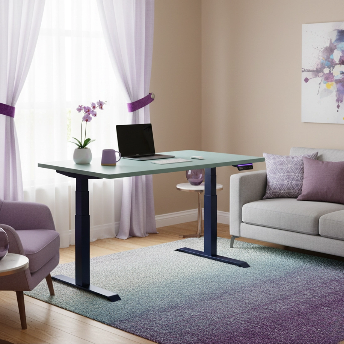 Dank des Einsatzes von zwei Motoren ermöglicht das elektrische Gestell ein sanftes Anheben und Absenken des Tisches mit einer Belastung von bis zu 140 Kilogramm. Die hochwertigen Motoren verändern die Position des Tisches mit einer Geschwindigkeit von bis zu 38 mm/s, wodurch die Tischhöhe schnell und mühelos eingestellt werden kann.