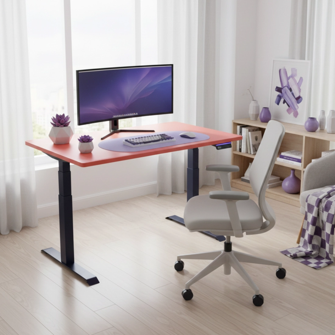Dank des Einsatzes von zwei Motoren ermöglicht das elektrische Gestell ein sanftes Anheben und Absenken des Tisches mit einer Belastung von bis zu 140 Kilogramm. Die hochwertigen Motoren verändern die Position des Tisches mit einer Geschwindigkeit von bis zu 38 mm/s, wodurch die Tischhöhe schnell und mühelos eingestellt werden kann.