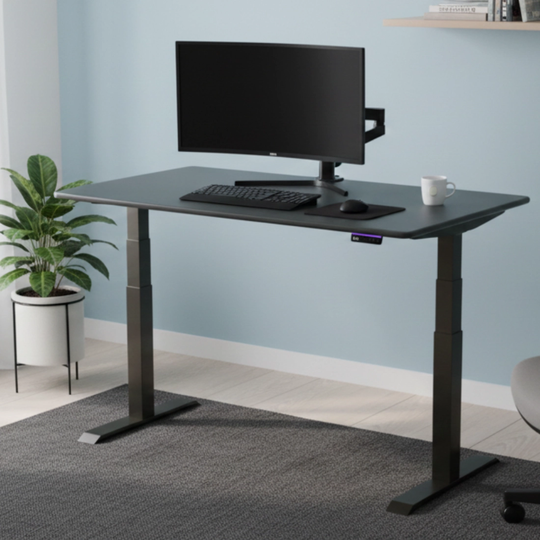 Dank des Einsatzes von zwei Motoren ermöglicht das elektrische Gestell ein sanftes Anheben und Absenken des Tisches mit einer Belastung von bis zu 140 Kilogramm. Die hochwertigen Motoren verändern die Position des Tisches mit einer Geschwindigkeit von bis zu 38 mm/s, wodurch die Tischhöhe schnell und mühelos eingestellt werden kann.