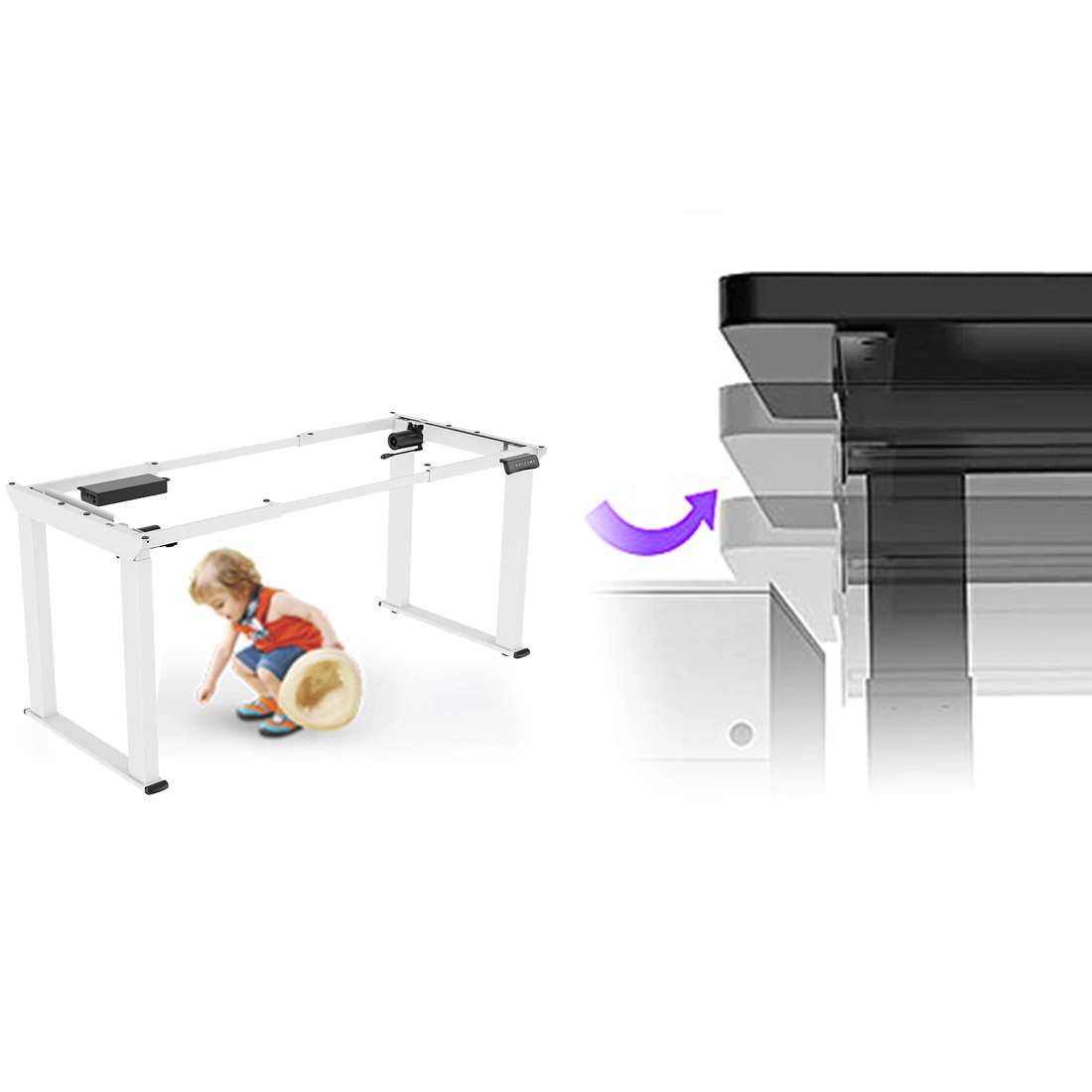 Mit den Tasten zur Höheneinstellung des Tisches aus dem Speicher des Geräts können Sie die Position des Tisches ändern, ohne ihn auch nur anzusehen. Dies ist eine sehr bequeme Möglichkeit. Aber einen beweglichen Tisch oder Schreibtisch unbeaufsichtigt zu lassen, wenn Sie kleine Kinder oder ein Haustier zu Hause haben? Das ist doch anstrengend, oder? Deshalb ist das Gestell mit einem fortschrittlichen Antikollisionssystem ausgestattet, um die Sicherheit Ihrer Lieben zu gewährleisten. Es funktioniert wie folgt. Sobald die Sensoren einen Kontakt mit einem Hindernis erkennen, stoppen sie automatisch das Anheben oder Absenken des Rahmens. Sie brauchen sich also keine Sorgen um die Sicherheit Ihres Kindes zu machen, wenn Sie die Position des Gestells verändern.
