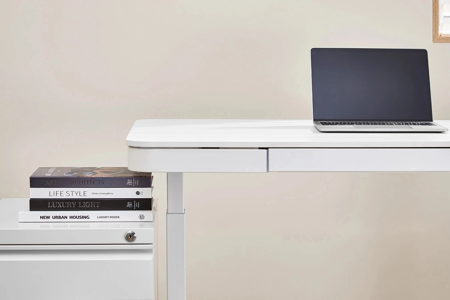 Das einmotorige Spacetronik Ergoline-System ermöglicht einen schnellen und stabilen Wechsel zwischen Sitzen und Stehen in weniger als 10 Sekunden. Die hochwertige 2-stufige Säulenkonstruktion sorgt für sanfte Übergänge mit einer maximalen Verstellgeschwindigkeit von 25 mm/s. Der Schreibtisch arbeitet leise, nicht mehr als 50 dB, was ein angenehmes Arbeiten ermöglicht.