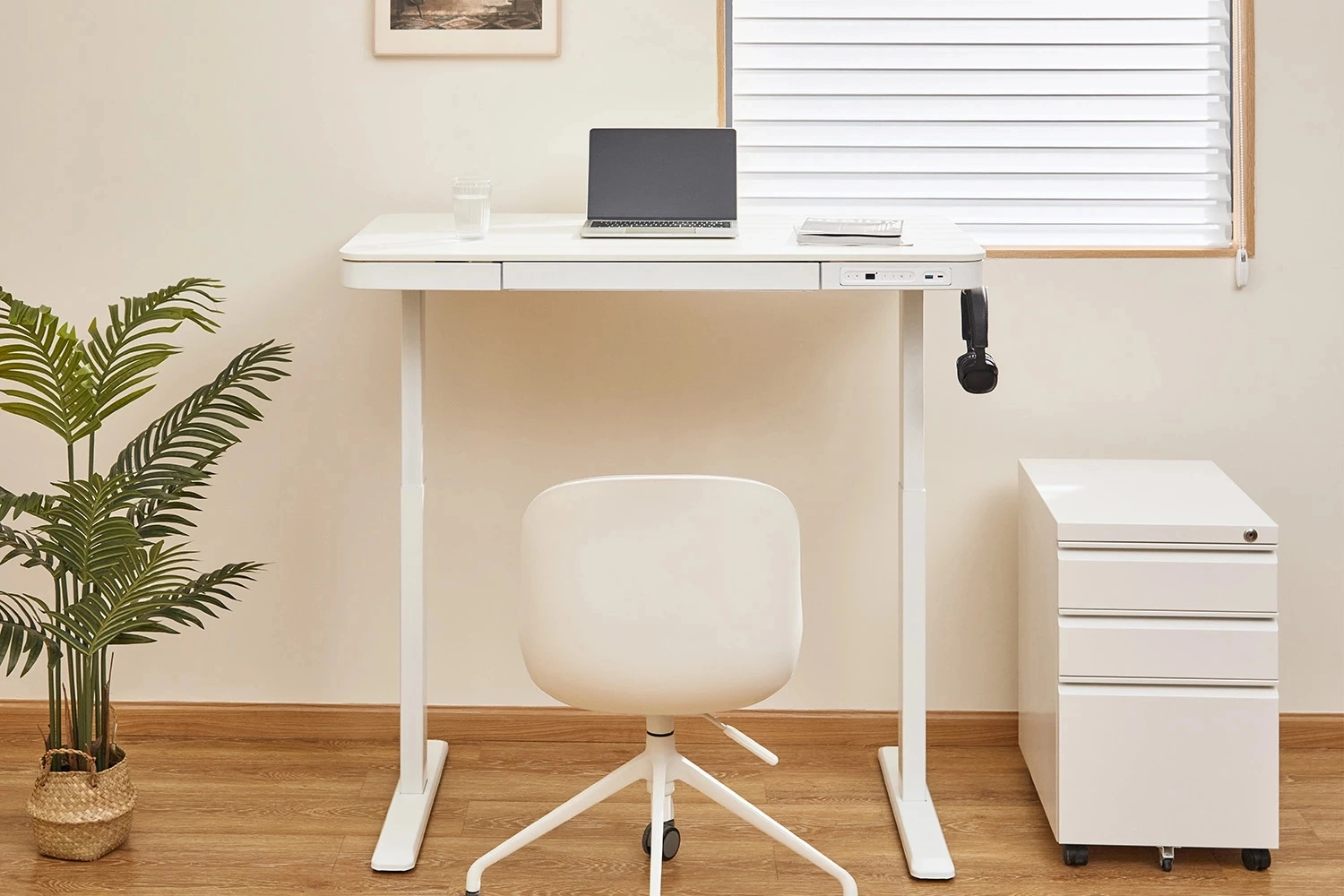 Der Schreibtisch ist mit einer fortschrittlichen Touch-Steuerung ausgestattet, die es Ihnen ermöglicht, Ihre bevorzugten Höheneinstellungen zu speichern. Mit einer einzigen Berührung kann der Tisch schnell in die zuvor gespeicherten Positionen gebracht werden, was zusätzlichen Komfort bietet. Darüber hinaus verfügt der Controller über einen USB-C-Ausgang und einen USB-A-Ausgang, sodass Sie Ihre mobilen Geräte ganz einfach aufladen können, ohne zusätzliche Ladegeräte zu benötigen. Diese Lösung sorgt für eine aufgeräumte Tischplatte und bietet einfachen Zugang zu einer Stromquelle für alle Geräte, die Sie benötigen.