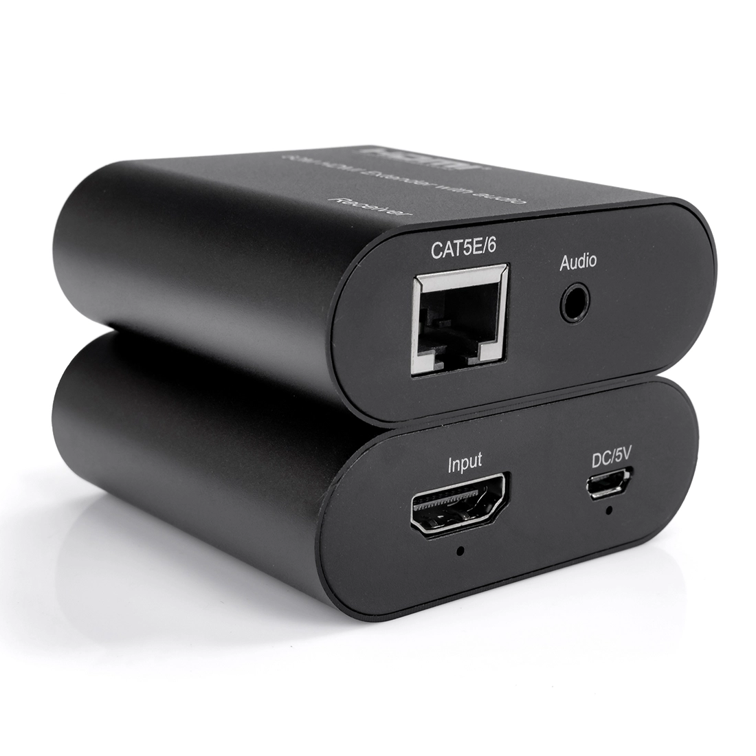 Spacetronik SPH-HLC52HDMI Signal Extender . Das Gerät ermöglicht den Anschluss eines High-Definition (HD) Signals - 1080p@60Hz an einen Empfänger (TV, Monitor, etc.), der mit einem HDMI-Anschluss ausgestattet ist, über ein CAT 5e, 6 oder höher verdrilltes Kabel. Das Set enthält einen Sender (TX) und einen Empfänger (RX). Außerdem kann das Gerät Audio über 3,5-mm-Stereoklinkenstecker übertragen.