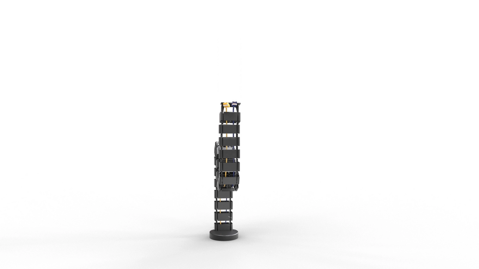 Die Spacetronik SPK-188 Kabelorganisation besteht aus 20 Modulen. Jedes von ihnen kann leicht abgenommen oder angebracht werden. So können Sie die Höhe des Organizers leicht an Ihre Bedürfnisse anpassen. Wenn Sie die einzelnen Komponenten jedoch nicht abnehmen möchten, müssen Sie sich nicht darum kümmern. Dank seiner Skelettbauweise lässt sich der Organizer an unterschiedliche Schreibtischhöhen anpassen.