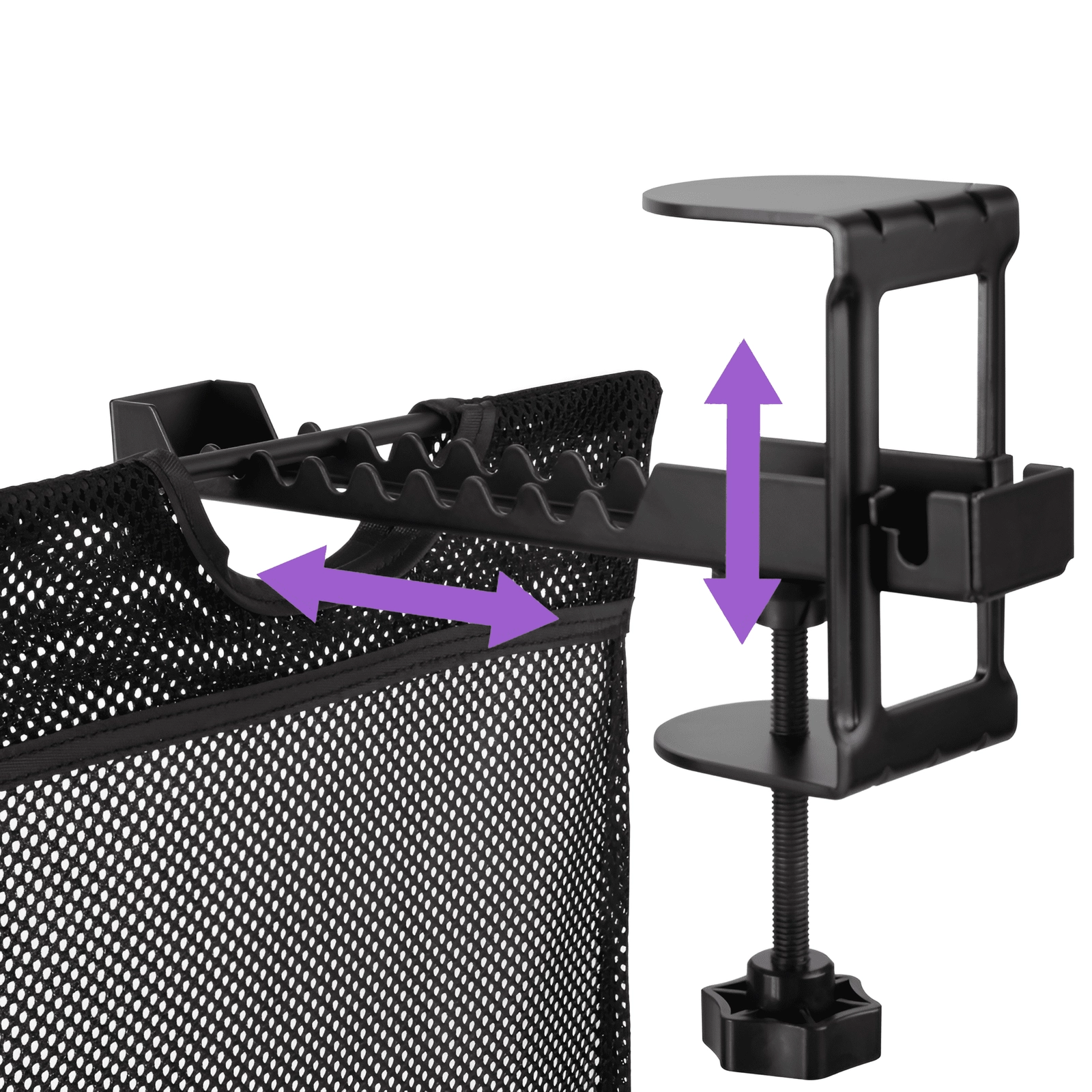 DerSPK-510 Untertisch-Stromleistenhalter ist mit zwei verstellbaren Klemmen ausgestattet, so dass Sie Ihre Schreibtischplatte nicht durchbohren müssen. Dadurch lässt sich der Kabelhalter leicht von einem Ort zum anderen bewegen, so dass Sie ihn genau dort einsetzen können, wo Sie es wünschen. Die Tatsache, dass die Klemmen verstellbar sind, bedeutet andererseits, dass er für viele Tischplattenstärken geeignet ist. Somit ist der SPK-510 Kabelhalter mit den meisten Schreibtischen kompatibel.