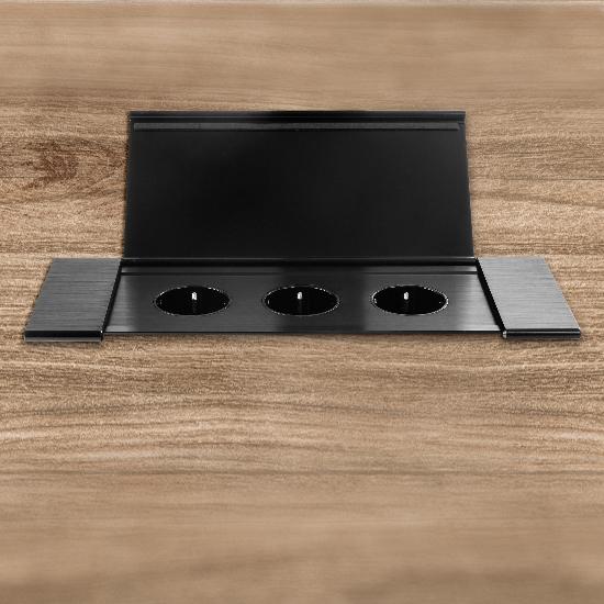 Sie suchen die perfekte Lösung, um Eleganz und Funktionalität in Ihrem Büro, Ausstellungsraum, Konferenzraum oder Zuhause zu verbinden? Die aufklappbare Möbelsteckdose von Spacetronik ist ein vielseitiges Produkt, das sich jeder Herausforderung stellt. Die drei Schuko-Steckdosen eignen sich perfekt als Steckdosenleiste auf einer Arbeitsplatte.