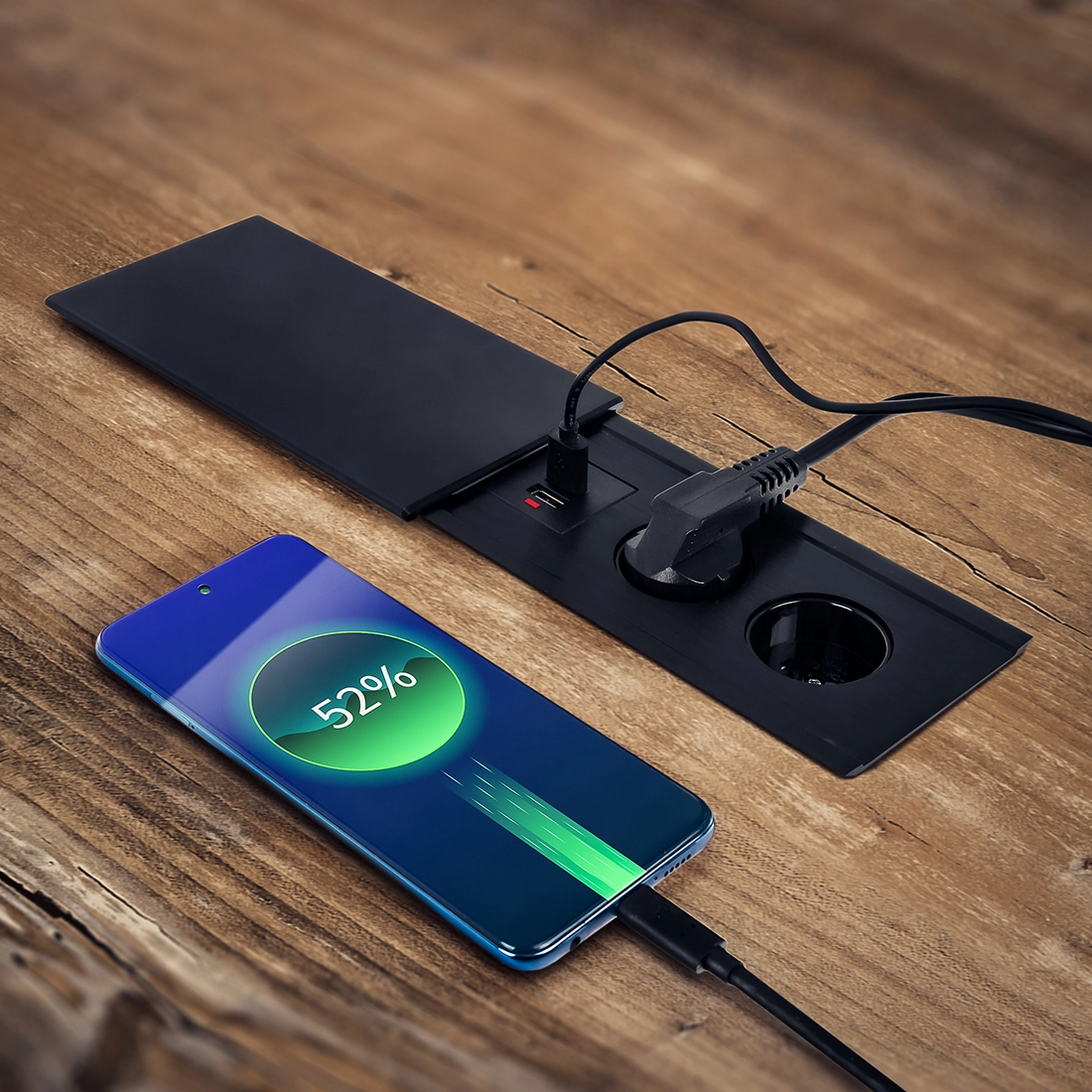 Möbeleinbausteckdose in schlichtem und modernem Design