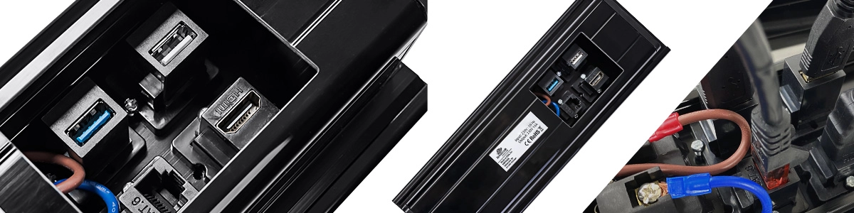 -Praktische Schiebeabdeckungen: Schiebeabdeckungen aus Aluminium schützen die Anschlüsse, wenn sie nicht benutzt werden, und sorgen für ein ästhetisches Erscheinungsbild.
