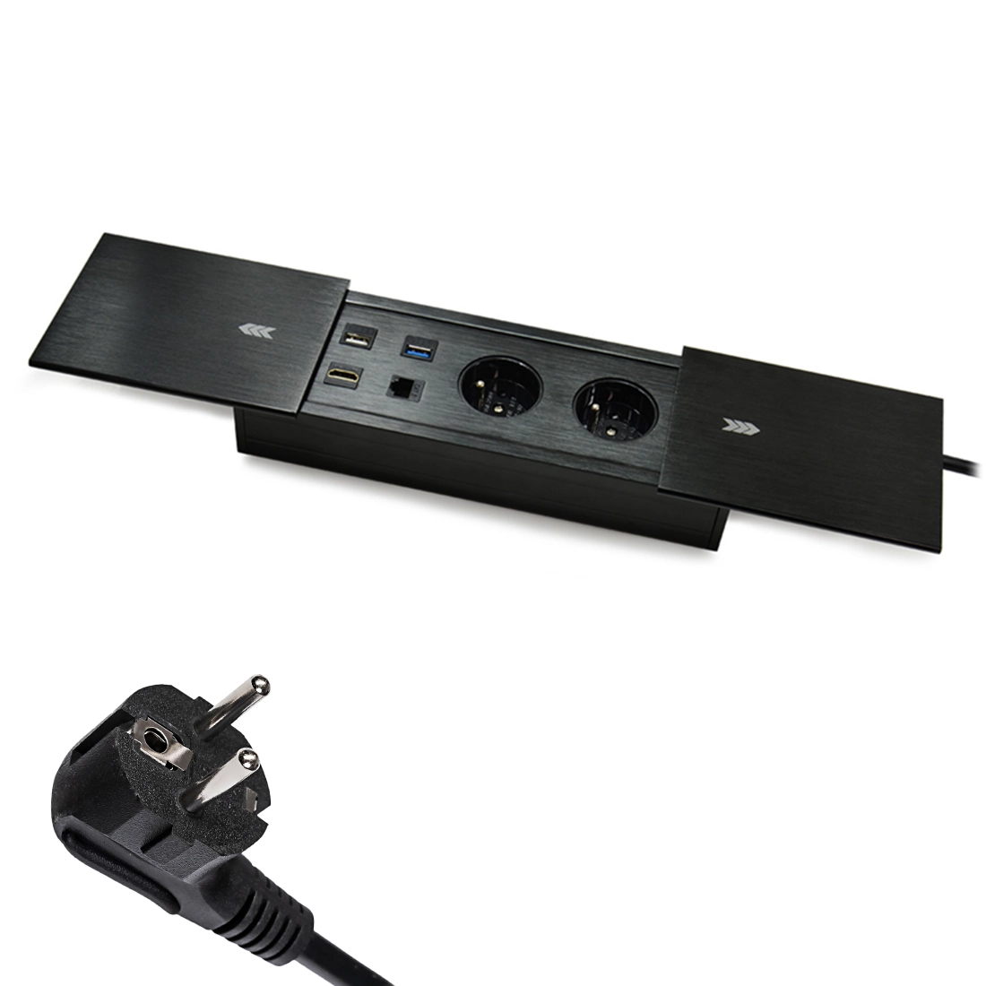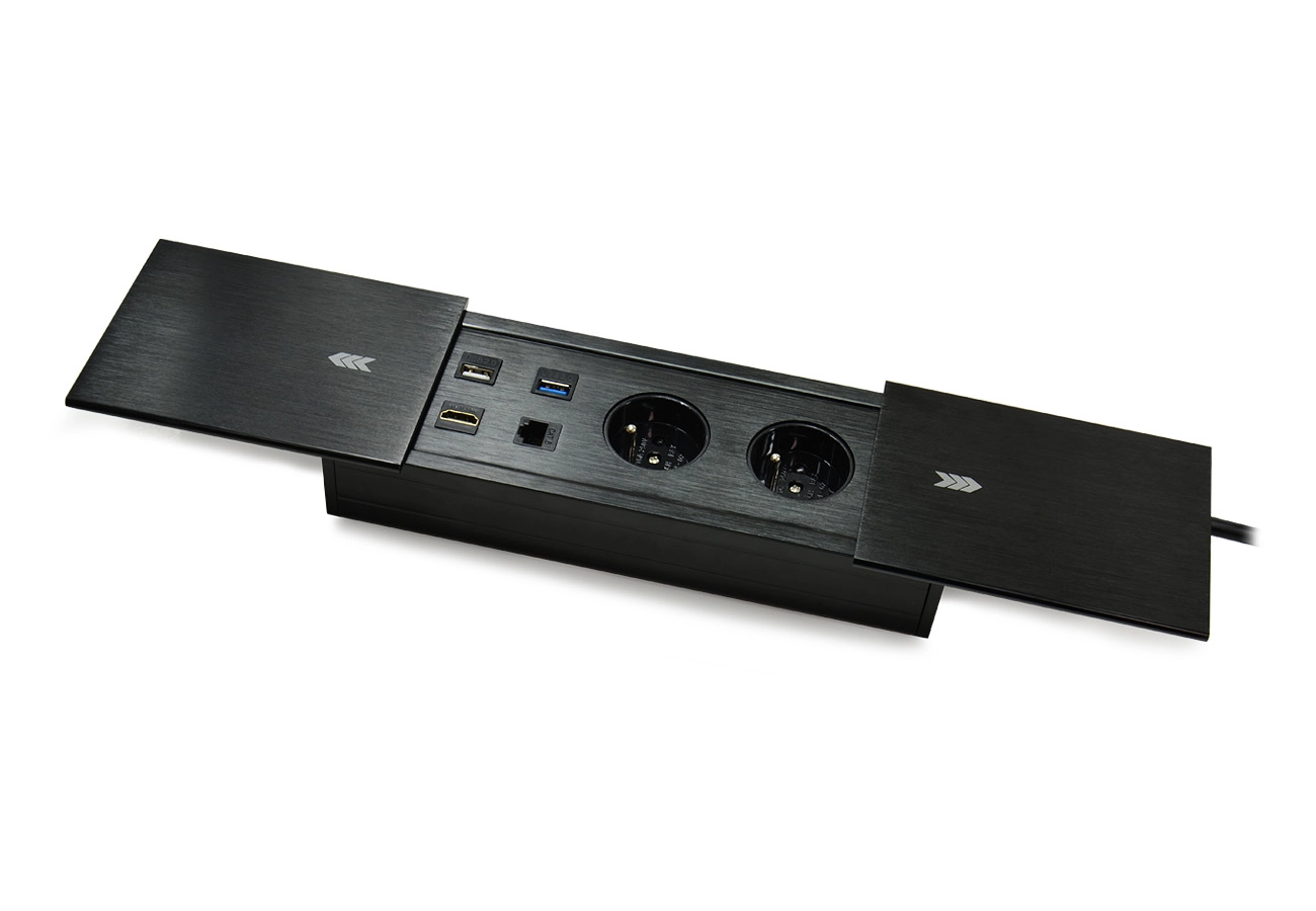 Sie suchen die perfekte Lösung, um Eleganz und Funktionalität in Ihrem Büro, Ausstellungsraum, Konferenzraum oder Zuhause zu verbinden? Die ausziehbare Spacetronik-Tischsteckdose ist ein vielseitiges Produkt, das jeder Herausforderung gerecht wird. Mit einem modernen Design und einer Vielzahl von Anschlüssen wie USB, HDMI und Ethernet bringen unsere Möbelsteckdosen Komfort und Ästhetik in jeden Arbeitsbereich.