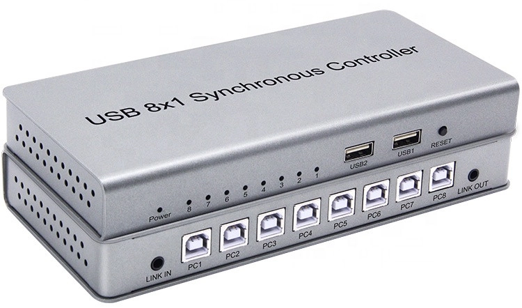 Switch, KVM Switch USB 8/1 Spacetronik SPU-81SW PROSwitch - KVM Switch ist ein Gerät, das es Ihnen ermöglicht, Eingabeperipheriegeräte (Maus, Tastatur, Flash-Speicher) an mehrere PCs anzuschließen. Unser Modell, Spacetronik SPU-81SW PRO, ermöglicht die Installation von Peripheriegeräten für bis zu 8 Arbeitsstationen gleichzeitig. Der Anschluss selbst ist Plug&Play und benötigt keine Software oder Treiber. Der Benutzer muss lediglich das Kabel/Adapter in den USB Typ A Port auf der Vorderseite des Gerätes einstecken und die PCs mit den USB Typ B Ports auf der Rückseite verbinden.