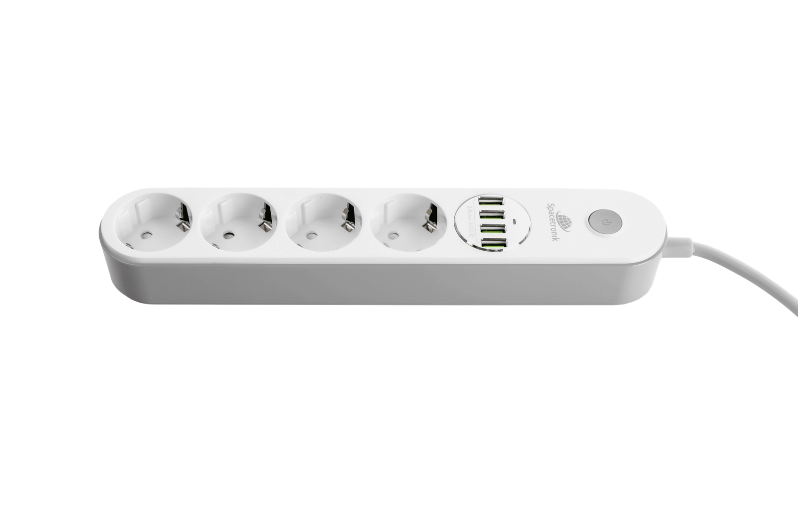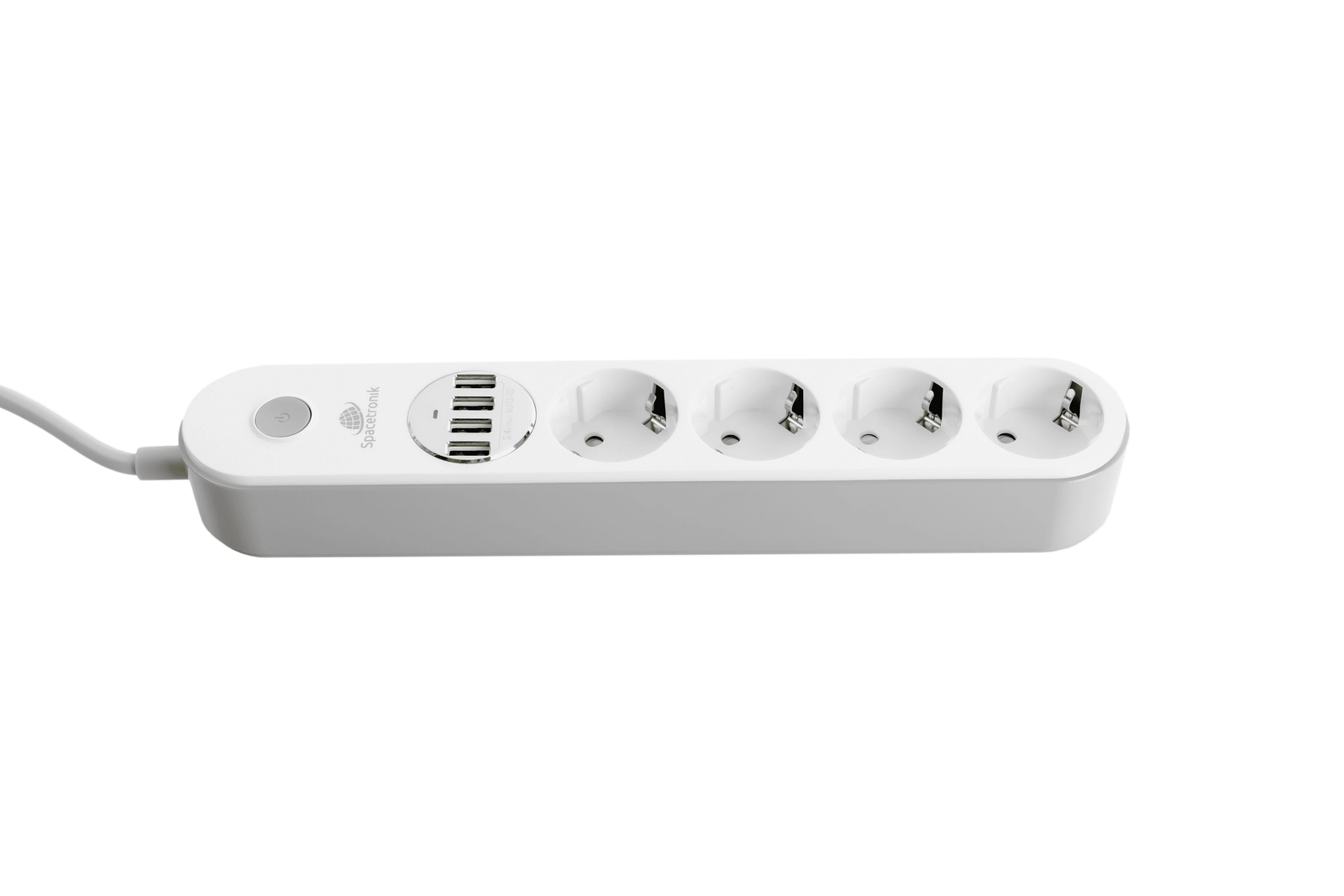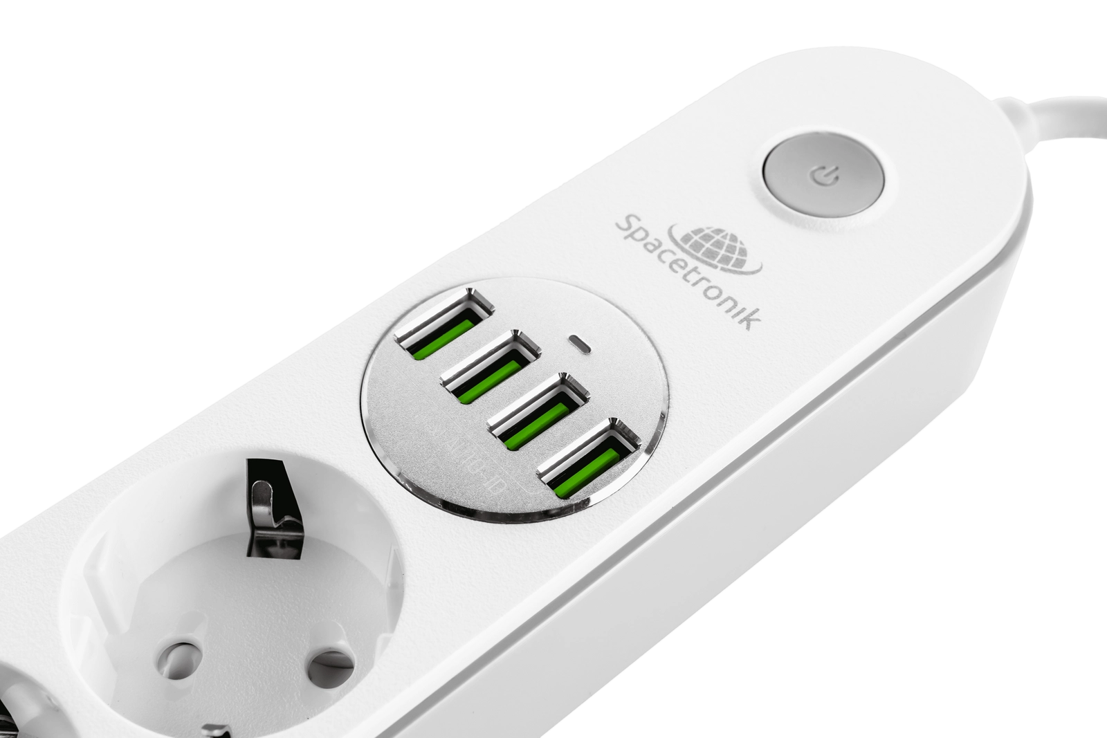 Die Vielseitigkeit des Spacetronik SR-203 Ladegeräts wird durch die 4 eingebauten USB-A-Anschlüsse noch verstärkt. Damit können Sie alle Ihre wiederaufladbaren Geräte aufladen. Egal, ob es sich um ein Telefon, ein Tablet, einen Laptop oder ein Konsolenpad handelt. Zusammen mit den 4 AC-Anschlüssen können Sie bis zu 8 elektronische Geräte aufladen. Alles durch Einstecken der Steckdosenleiste in eine Steckdose. Die Spacetronik SR-203 Steckdosenleiste bietet Ihnen die 8-fache Leistung einer normalen Steckdose.