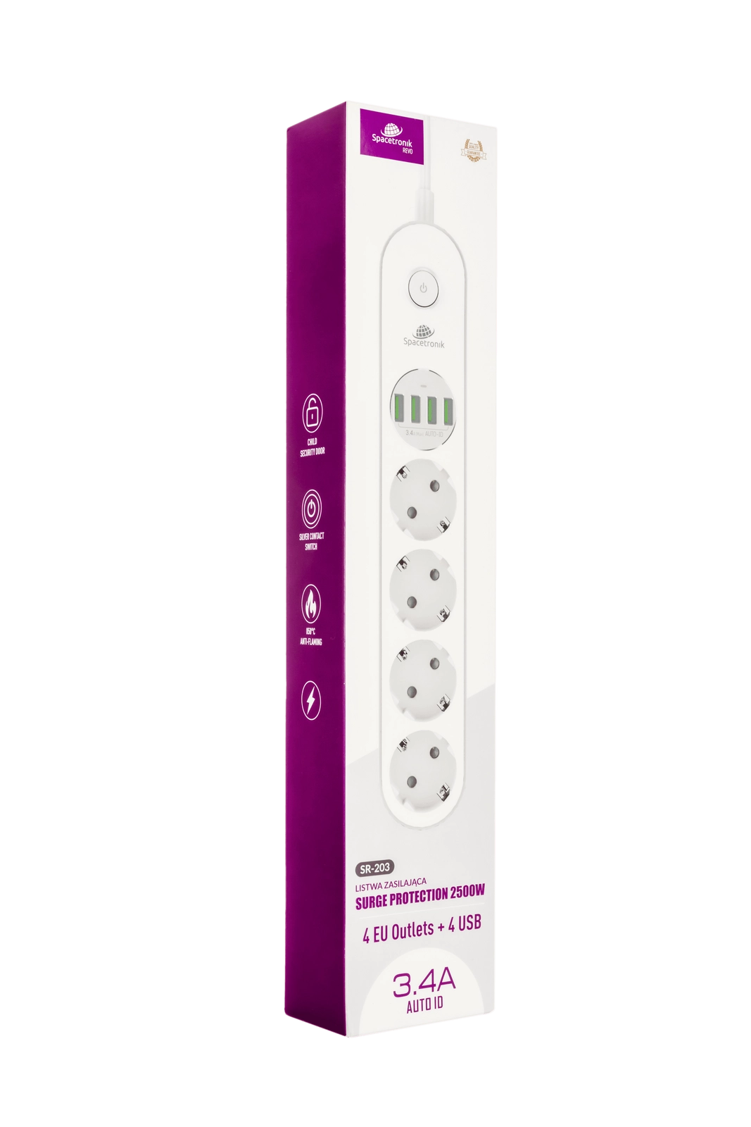 Die Welt der Technologie um uns herum bedeutet, dass wir jeden Tag viele elektronische Geräte benutzen. Natürlich brauchen sie Zugang zu Strom. Es ist daher eine gute Idee, sich mit Geräten auszustatten, die ihnen diesen Zugang ermöglichen. Ein Beispiel für ein solches Produkt ist die Spacetronik SR-203 Steckdosenleiste, die mit 4 AC-Anschlüssen und 4 USB Auto-ID-Anschlüssen ausgestattet ist. Dadurch können die meisten gängigen Geräte daran angeschlossen werden. Sie können also 8 Geräte gleichzeitig aufladen. Das Ladegerät verfügt außerdem über eine Quick Charge 2.0-Funktion, was bedeutet, dass das Gerät in der Lage ist, Akkus mit hoher Kapazität schnell und effizient zu laden. Die Leiste hat ein dickes 2 m langes Kabel und die Rückseite ist mit Aufhängelöchern versehen. So lässt es sich überall leicht anbringen.
