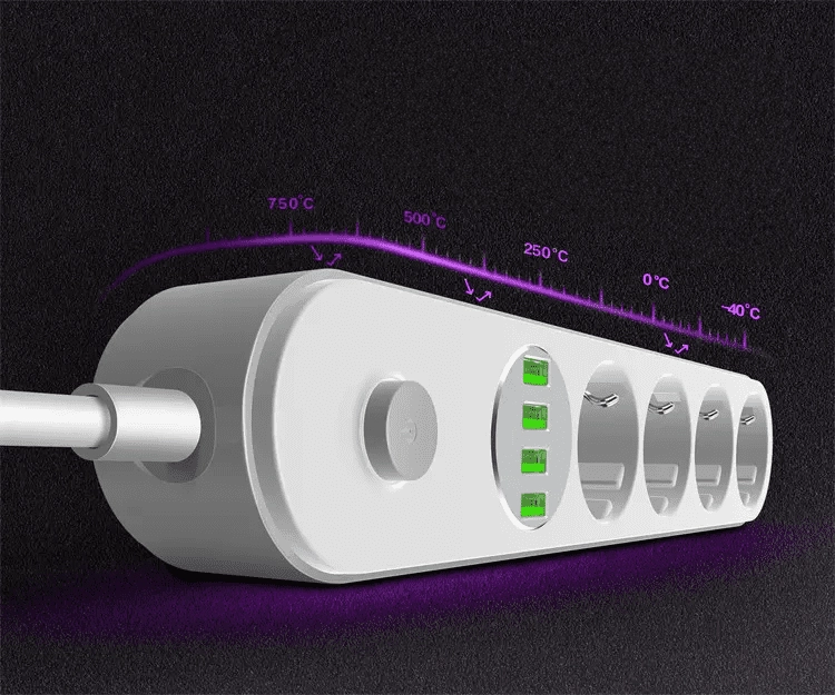 Jedes elektronische Gerät muss Ihre Sicherheit im Gebrauch garantieren. Deshalb wurde die Spacetronik SR-203 Steckdosenleiste komplett aus feuerfesten Materialien gefertigt. Sogar bis zu 750 Grad. Das sorgt für Ihre Sicherheit. Im Falle eines Kurzschlusses in der elektrischen Anlage wird die Steckdosenleiste nicht in Flammen aufgehen und einen Brand verursachen. Darüber hinaus ist das Ladegerät mit einem dicken, 2 Meter langen Kabel ausgestattet. Dies garantiert Ihnen Widerstandsfähigkeit gegen mechanische Beschädigungen. Ein noch wichtigerer Vorteil ist jedoch, dass Ihr Haustier es nicht so leicht zerbeißen kann. So gewährleisten Sie gleichzeitig die Sicherheit Ihres Haustieres. Darüber hinaus wurde das Spacetronik SR-203 Ladegerät mit Bedacht entworfen. So kann Ihr Kind seine Finger nicht hineinstecken. Die Konstruktion des Gerätes hingegen ist kratzfest.