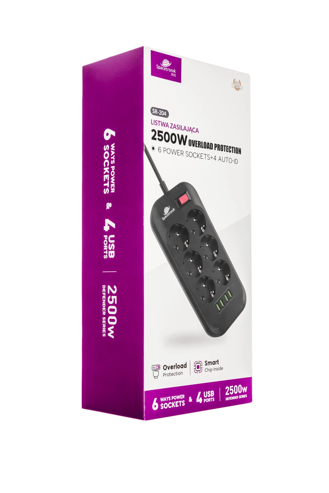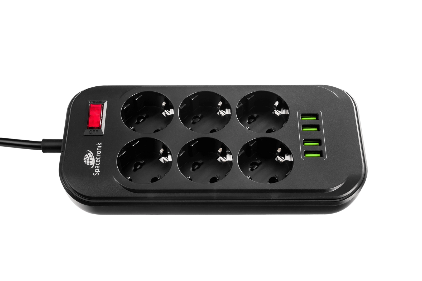 Sie wollten ein Gerät an einen Kontakt anschließen, hatten aber keine Steckdose zur VerfügungA Diese Situation ist wohl jedem von uns schon einmal passiert. Wir leben in einer Welt der sich schnell entwickelnden Technologie. Die Elektronik umgibt uns daher von allen Seiten. Vor diesem Hintergrund hat Spacetronik eine Lösung für dieses Problem entwickelt. Die Steckdosenleiste SR-204 ist mit 6 AC-Steckdosen und 4 USB-A-Anschlüssen ausgestattet. Das bedeutet, dass Sie mit einer einzigen Steckdose bis zu 10 Geräte gleichzeitig aufladen können! Probleme mit fehlenden Steckdosen werden Sie nicht mehr stören.
