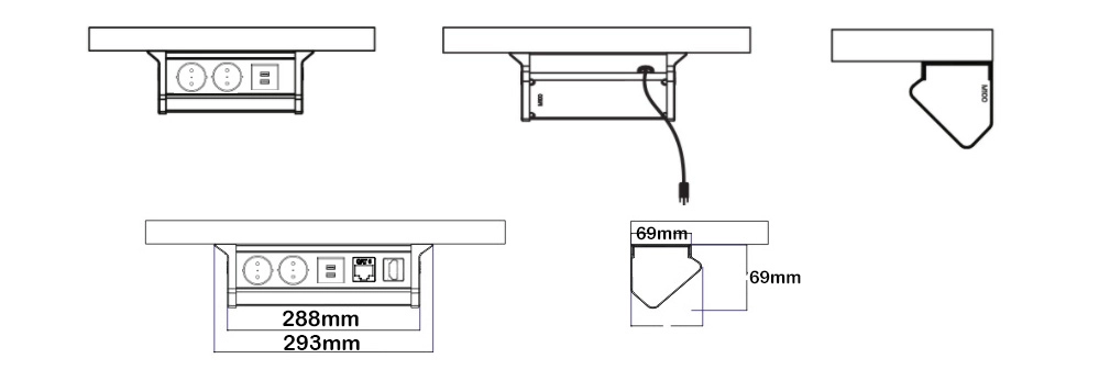 Die Spacetronik ERGOLINE Unterputz-Möbelsteckdose SPS-U26B V2 ist eine moderne Lösung, die in Geschäften, Ausstellungsräumen, Konferenzräumen, Büros und auch zu Hause eingesetzt wird. Sie ist aus Aluminium und hochwertigen Komponenten gefertigt. Das Produkt ist für den Inneneinbau in Schreibtische, Arbeitsplatten und Tische konzipiert, sowohl vertikal als auch horizontal, und ermöglicht den Zugang zu Steckdosen. Der Mediaport ist mit 2 Steckdosen 110-250 V (Typ Schuko), doppeltem USB-Ladegerät, HDMI 2.0-Anschluss und CAT-6 RJ45 Ethernet ausgestattet.