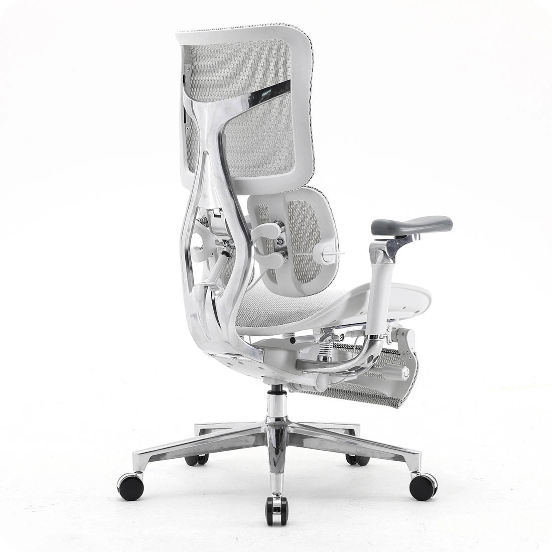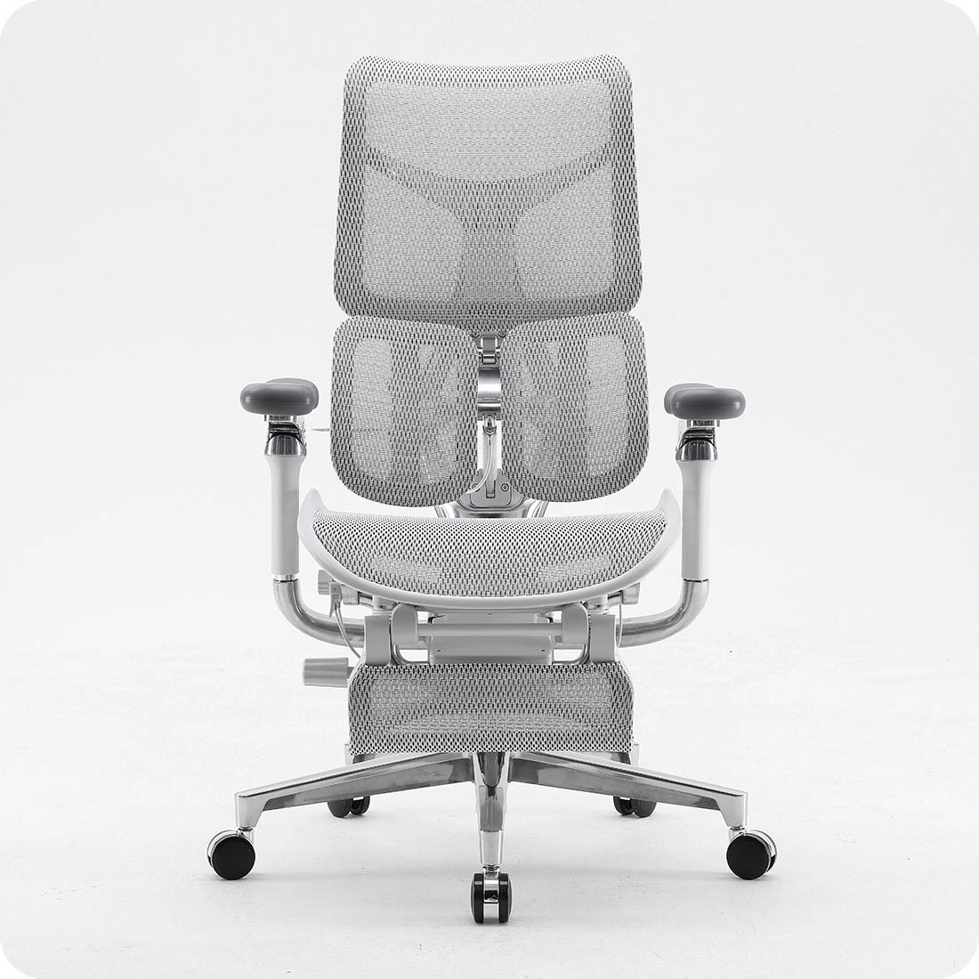 Jeder von uns braucht von Zeit zu Zeit eine Pause, um sich zu strecken und die Knochen aufzurichten. Keiner kann ohne Pause arbeiten. Deshalb ist der Bürostuhl Spacetronik SPRINGLE 66 mit einer verstellbaren Rückenlehne und einer ausziehbaren Fußstütze ausgestattet, die auf Ihre Bedürfnisse abgestimmt ist. Wenn Sie sich für dieses Modell entscheiden, haben Sie die Möglichkeit, die Rückenlehne von 98° bis 138° zu neigen. Hinzu kommt die Fußstütze, die Sie jederzeit ausziehen können, um sich die Beine zu vertreten. So können Sie sich zu jeder Tages- und Nachtzeit bequem im Sessel zurücklehnen. Dies ist die ideale Lösung, um sich eine Weile zu entspannen, ohne den Arbeitsplatz zu verlassen. Für manche kann er auch als Notschlafmöglichkeit dienen - gönnen Sie sich kurze Nickerchen.